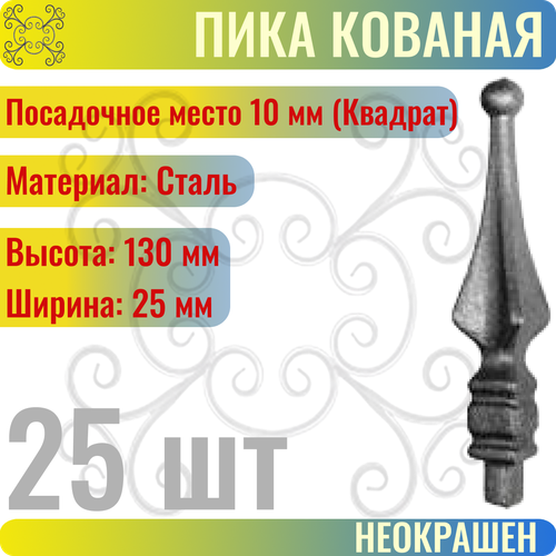 Кованый элемент пика литая 130х25 мм Посадочное место 10 мм — 25 шт: сравнение цен, характеристики, фото, актуальное наличие и цены.