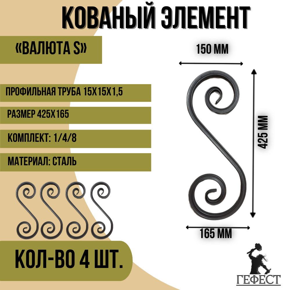 Купить Кованый элемент «Валюта S», 425х165 — 4 шт с доставкой по всей России. Кованый элемент «Валюта S», 425х165 — 4 шт: сравнение цен, характеристики, фото, актуальное наличие и цены.