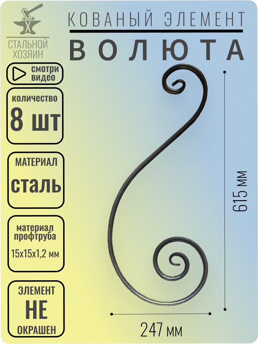 Кованый элемент Волюта. Размеры 615х247 мм. Из профильной трубы 15х15х1,2 мм — 8 шт: сравнение цен, характеристики, фото, актуальное наличие и цены.