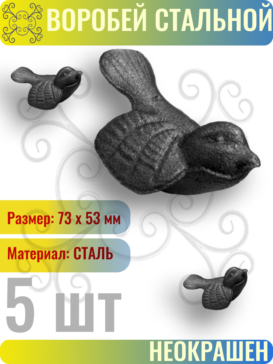 Кованый элемент Воробей литой литой из стали 73х53 мм — 5 шт: сравнение цен, характеристики, фото, актуальное наличие и цены.