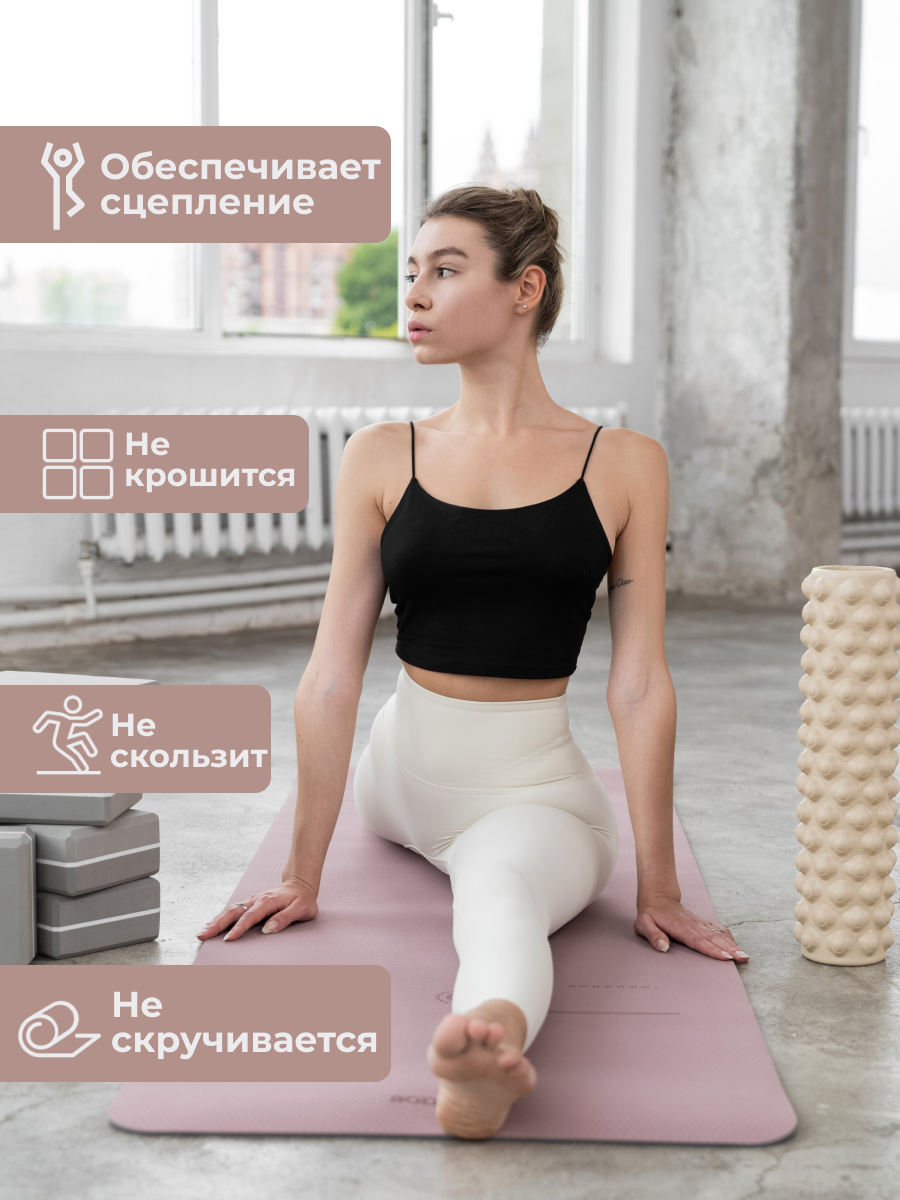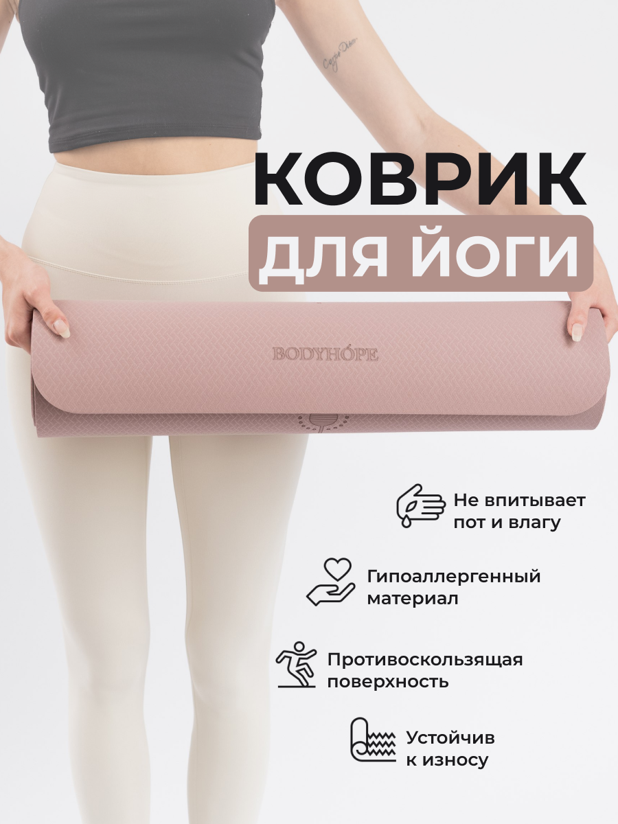 Коврик BODYHOPE для йоги, фитнеса, пилатеса, двухсторонний, розовый, 183×61 см: сравнение цен, характеристики, фото, актуальное наличие и цены.