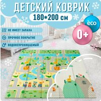 Купить Коврик детский для ползания 180×200 MIKMEL ECO Дороги/Холмы, складной развивающий игровой двусторонний на пол для новорожденных малышей термоковрик пазл с доставкой по всей России.