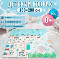 Коврик детский для ползания 180×200 MIKMEL ECO Городской трафик/Зоопарк, складной развивающий игровой двусторонний на пол для новорожденных малышей термоковрик пазл: сравнение цен, характеристики, фото, актуальное наличие и цены.