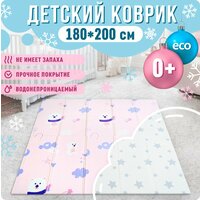 Купить Коврик детский для ползания 180×200 MIKMEL ECO Медвежата/Звездочки, складной развивающий игровой двусторонний на пол для новорожденных малышей термоковрик пазл с доставкой по всей России.