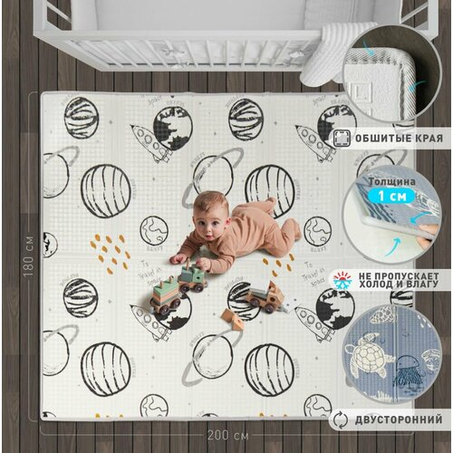 Коврик детский для ползания 180х200х1 см MIKMEL серия Premium создаст просторное и комфортное место для игр и отдыха вашего ребенка. Он позволяет малышу переворачиваться, учиться ползать и делать первые шаги. На коврике имеется рельеф, который развивает мелкую моторику, оказывает массажный эффект и стимулирует правильно развитие стоп ребенка. Его можно использовать как детский ортопедический коврик. За счет интересных дизайнов и возможности рисовать на нем не острыми фломастерами коврик детский развивающий позволяет ребенку открывать творческие способности. Протрите влажной тряпкой шедевр вашего художника, и он снова чист. Коврик в детскую комнату помогает вашему малышу в изучении и развитии тактильного и зрительного восприятия, формировании цветового восприятия, логического мышления и координации движений. Заметный рельеф и интересные картинки помогут вашему ребенку изучить цвета, буквы, цифры, геометрические фигуры и животных. Детский коврик для ползания 180х200 см является износостойким, плотным и упругим, долго сохраняет свою форму. Мы используем более толстое верхнее покрытие по сравнению с конкурентами, для того чтобы коврик был максимально долговечным. Детский развивающий коврик имеет две поверхности с разными дизайнами, одна из которых привлекает ребенка и создает интерактивное пространство для игр, а вторая позволяет вписать коврик в любом современный интерьер. На детский игровой коврик можно поместить игрушки и товары для новорожденных, детские игрушки для мальчика, детские игрушки для девочек, товары для новорожденных с 0+, бизиборд. Все это позволит создать комфортное и интересное место в вашем доме. Коврик детский складной обладает шумоизоляцией и поглощает шум от прыжков. Коврик для ползания детский имеет противоскользящее покрытие, которое защищает малыша от скольжения, препятствует падениям, травмам, амортизирует удары. Коврик защищает нежную кожу ребенка от повреждений и сохраняет колени, кисти рук от холода и потертостей. Коврик детский для ползания складной прекрасно защищает от холода, поскольку имеет высокие термоизоляционные свойства, что делает коврик очень теплым. Его можно использовать с очень холодным полом, на любой поверхности. Термоковрик детский предназначен как для игр в одежде, так и для ползания голышом и ходьбе босиком, он обеспечит тепло и безопасность вашему ребенку, а мягкая текстура сделает пребывание на нем максимально комфортным. Легкий уход за счет водоотталкивающего эффекта, позволяет легко вымыть ковер влажной тряпкой. Коврик детский для ползания складной изготовлен из вспененного пищевого полиэтилена, не имеет запаха, гипоаллергенный, экологически безопасен, не содержит бисфенол А (BPA free). Все это подтверждено обязательной сертификации соответствия ЕАС для детей 0+ месяцев. Складной коврик детский гораздо удобнее чем детский коврик пазл, поскольку его можно легко складывать книжкой и также быстро раскладывать. Размер в сложенном виде составляет 90х40х11 см, в разложенном 180х200х1 см. (±3%). В отличие от коврик пазл детский для ползания, коврик детский складной можно брать с собой. Для комфортного хранения дома среди детских вещей и для поездок в комплекте имеется качественная дорожная сумка. Коврик складной детский подходит для гостиной, детской, в прихожую. Он прекрасно заме