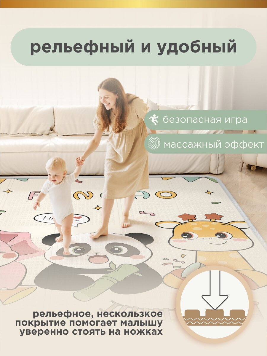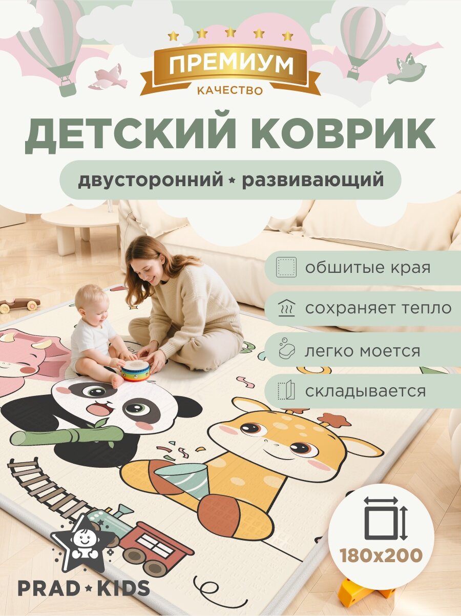 Купить Коврик детский для ползания 180×200 PRAD KIDS Premium «Дороги/Панда», складной развивающий игровой двусторонний для новорожденных малышей с доставкой по всей России.