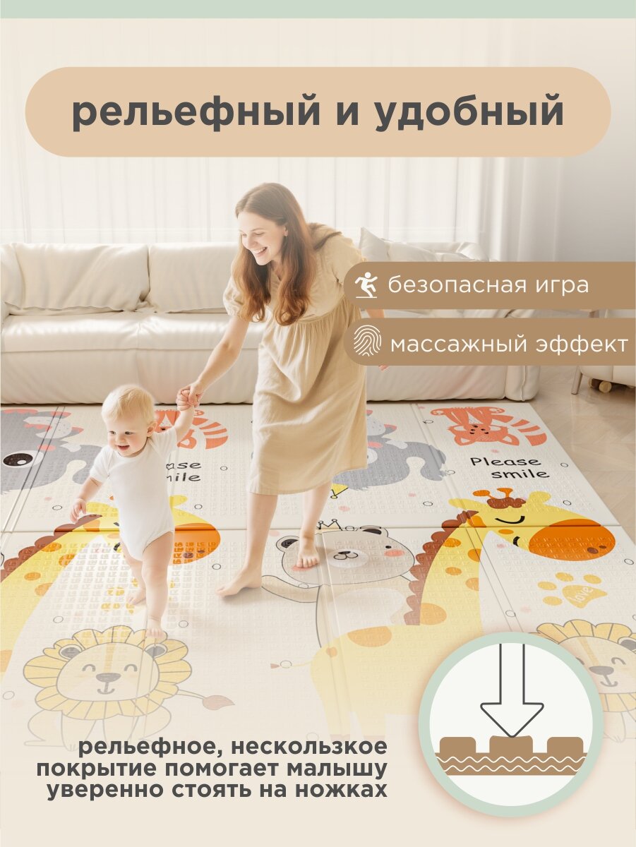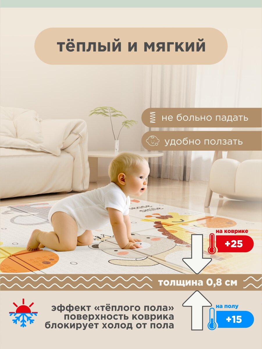 Купить Коврик детский для ползания 180×200 PRAD KIDS «Дороги/Африка», складной развивающий игровой двусторонний для новорожденных малышей с доставкой по всей России.