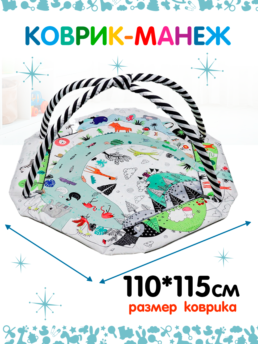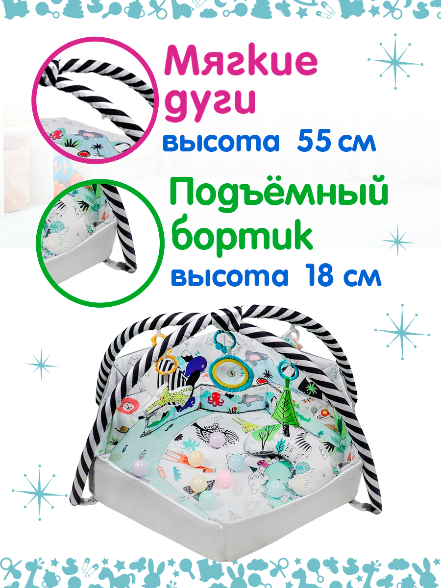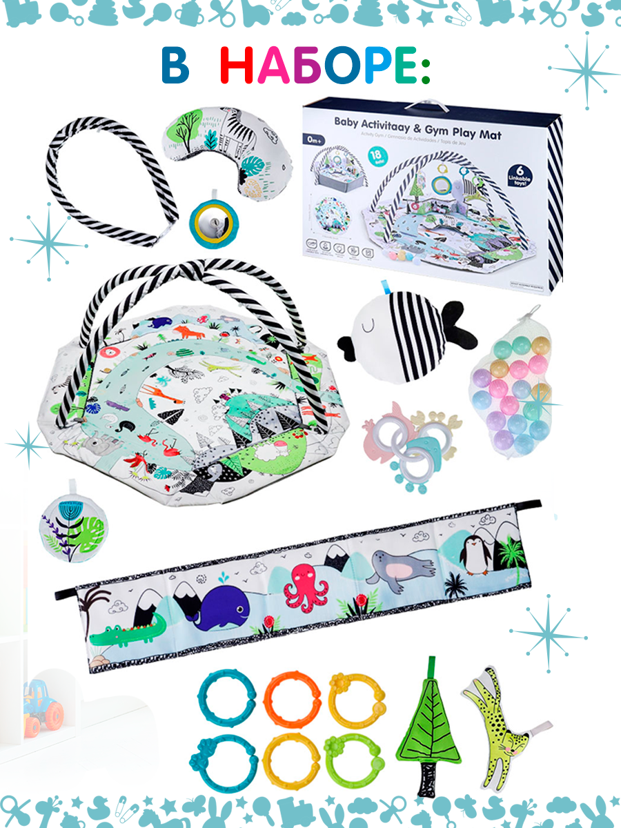 Развивающий детский игровой коврик с игрушками - это незаменимый помощник для стимуляции сенсорных, когнитивных и физических навыков вашего малыша.