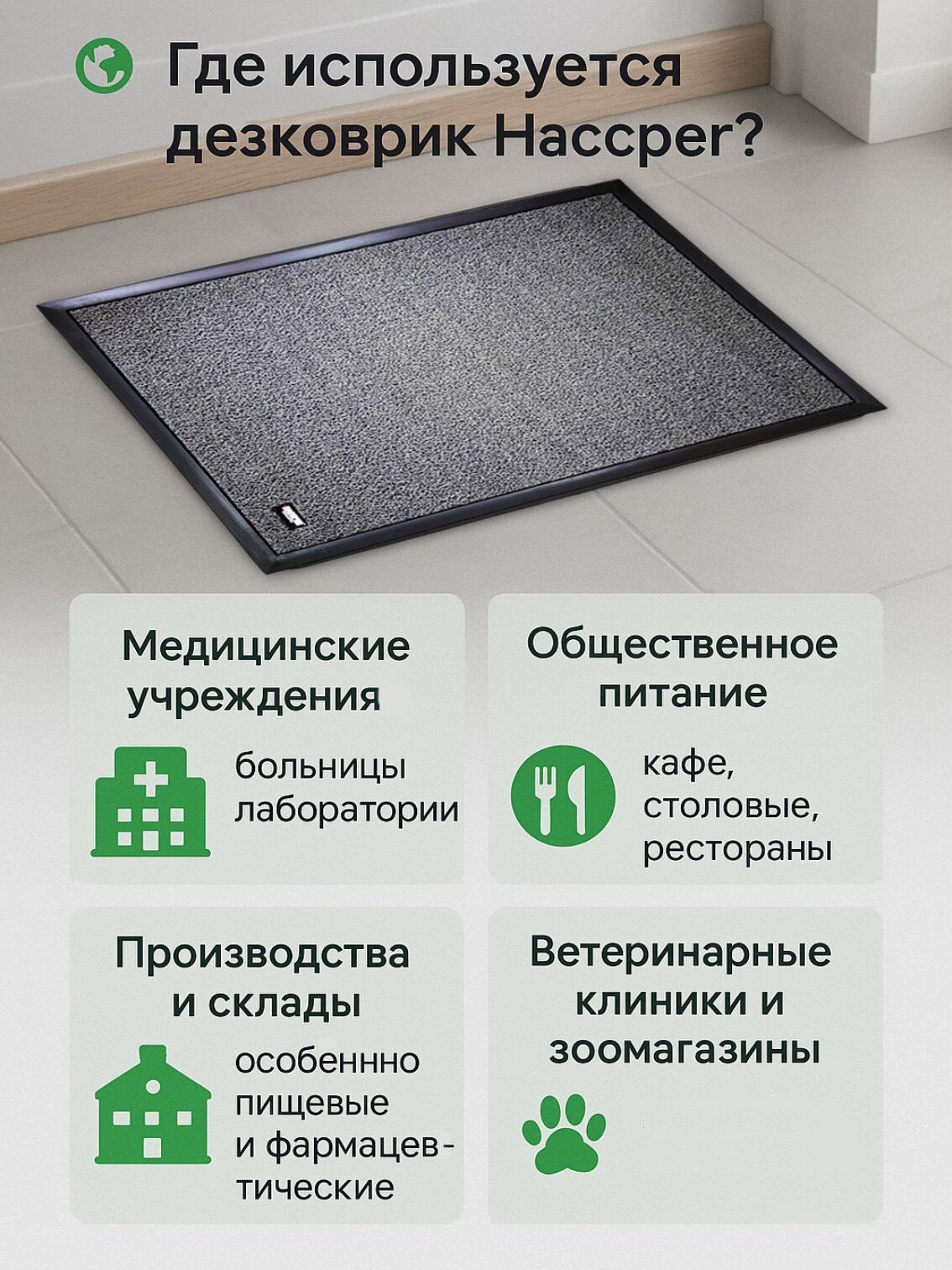 Купить Коврик дезинфекционный HACCPER Dezmatta с основой 600*470*18 мм, серый с доставкой по всей России. Коврик дезинфекционный HACCPER Dezmatta с основой 600*470*18 мм, серый: сравнение цен, характеристики, фото, актуальное наличие и цены.