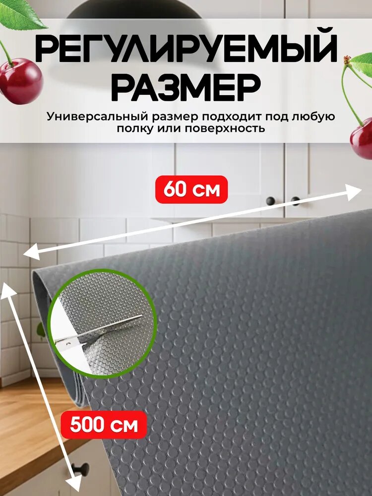 Коврик для холодильника, для кухонных полок, силиконовый, антискользящий, в рулоне 60Х500 серый: сравнение цен, характеристики, фото, актуальное наличие и цены.