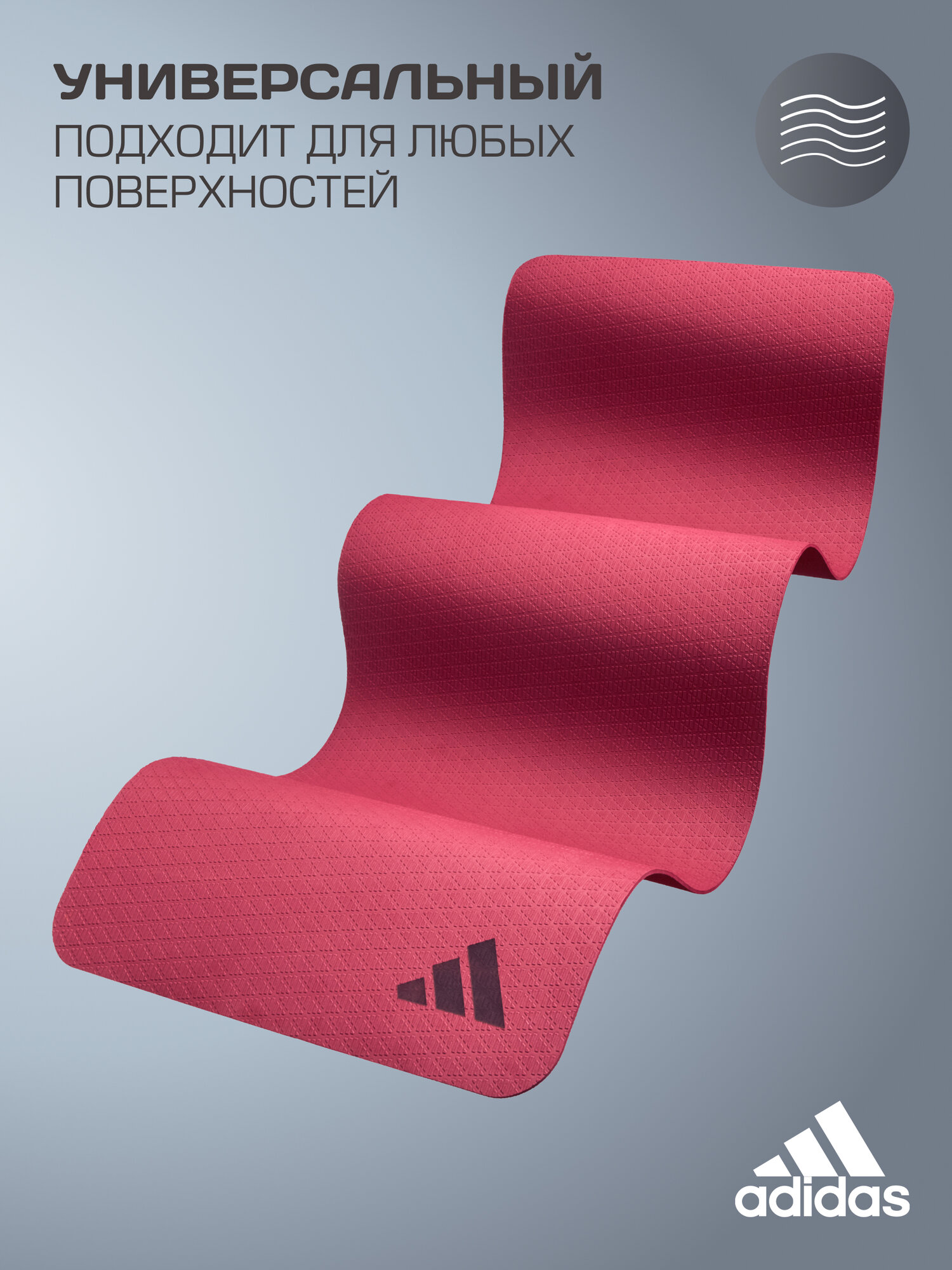 Коврик произведен с использованием нетоксичных и не содержащих ПВХ материалов. В рамках экологических обязательств, коврики для йоги adidas на 50% изготовлены из переработанных материалов.