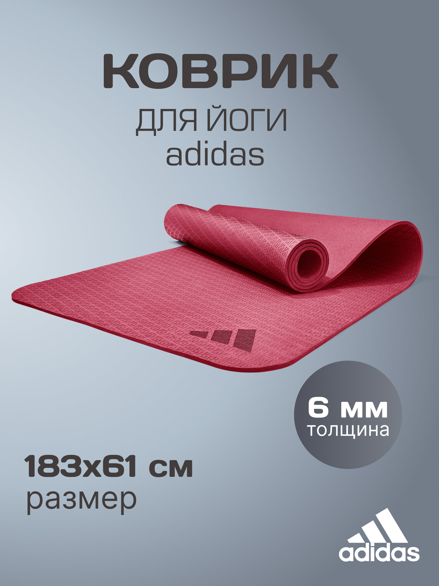 Купить Коврик для йоги Adidas ADYG-10002CB бургунди, 183 x 61см, толщина 6 мм с доставкой по всей России. Коврик для йоги Adidas ADYG-10002CB бургунди, 183 x 61см, толщина 6 мм: сравнение цен, характеристики, фото, актуальное наличие и цены.