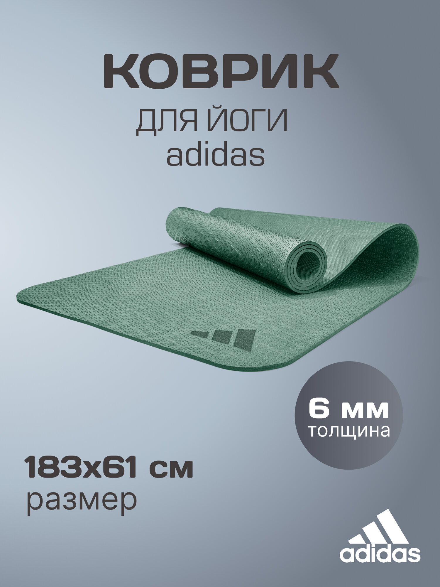 Купить Коврик для йоги Adidas ADYG-10002LI легендарный зеленый, 183 x 61см, толщина 6 мм с доставкой по всей России.