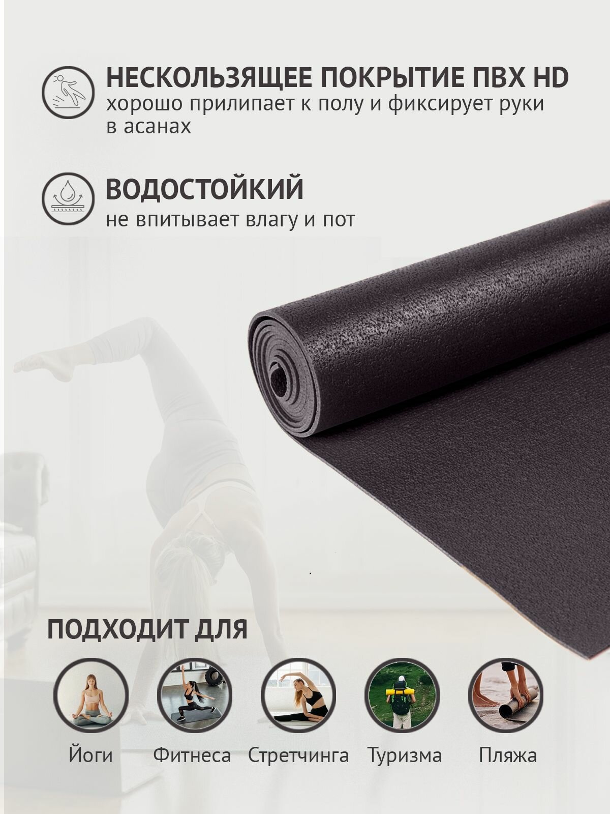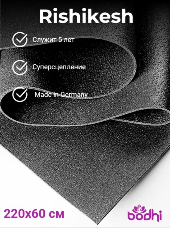 Коврик для йоги фитнеса Rishikesh Ришикеш, черный, 220 х 60 х 0,45 см, прочный и нескользящий из Германии, Bodhi Бодхи: сравнение цен, характеристики, фото, актуальное наличие и цены.
