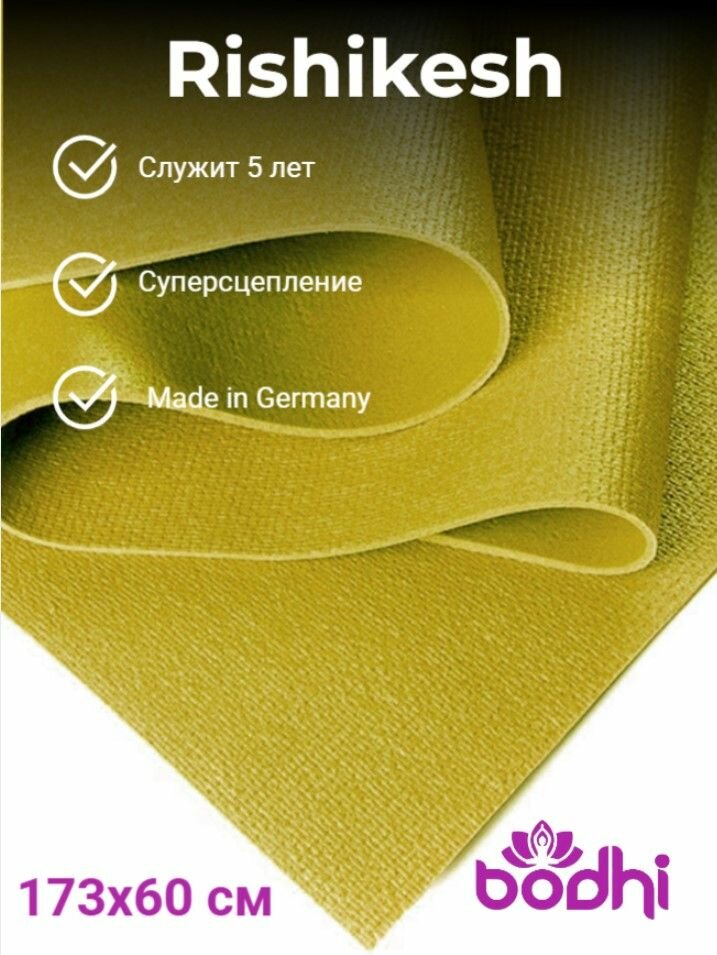 Коврик для йоги фитнеса Rishikesh Ришикеш, желтый, 173 х 60 х 0,45 см, прочный и нескользящий из Германии, Bodhi Бодхи: сравнение цен, характеристики, фото, актуальное наличие и цены.