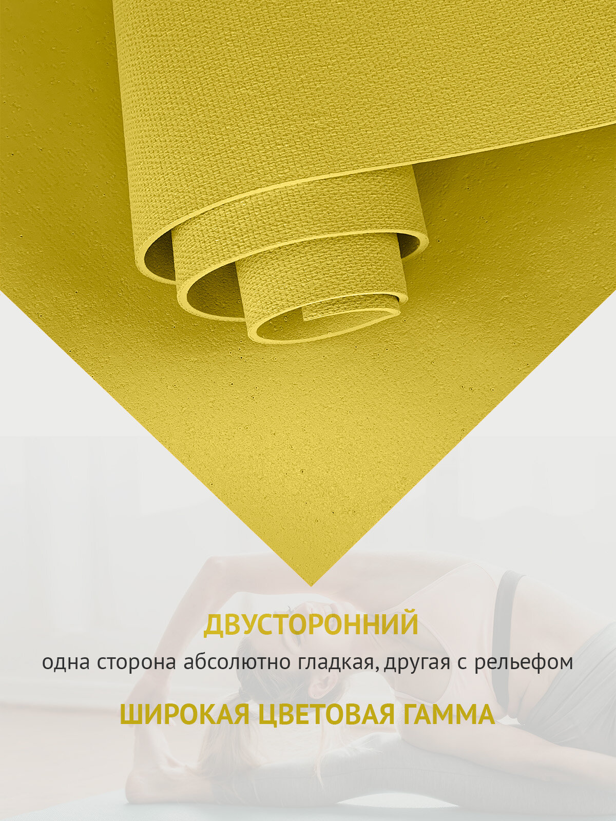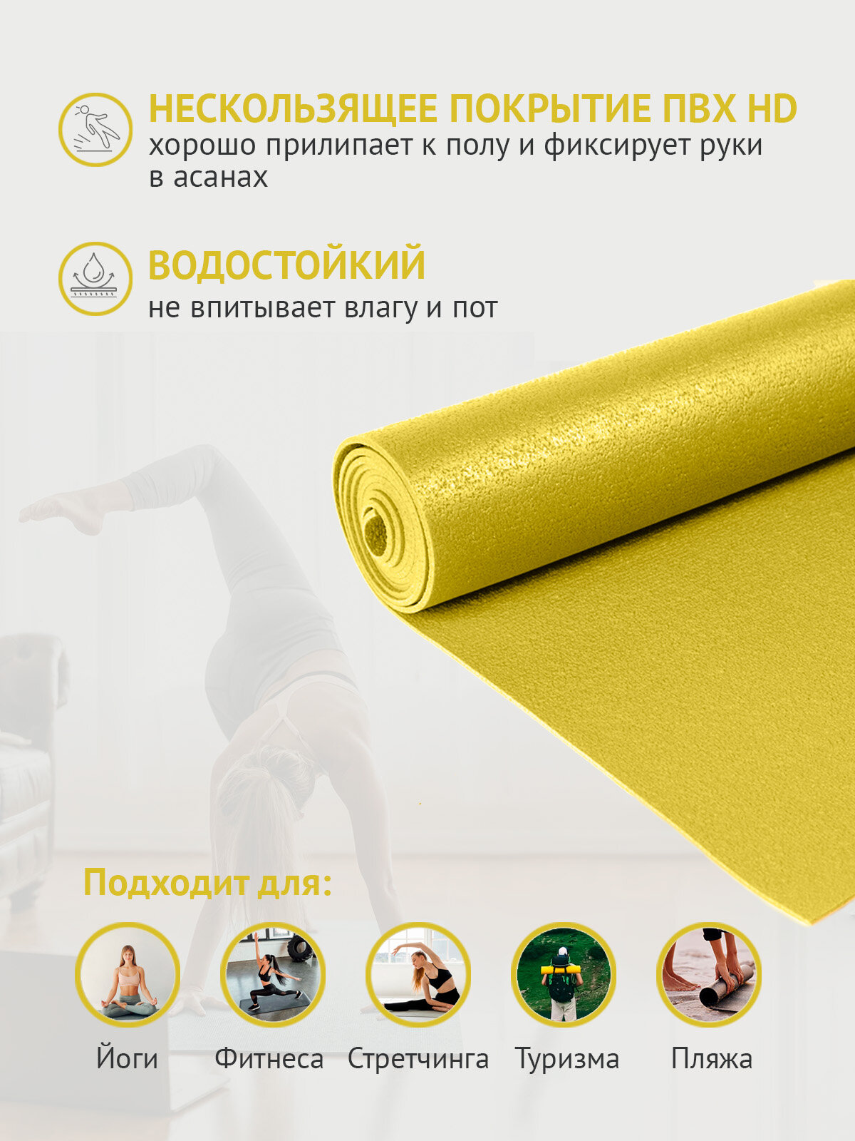 Коврик для йоги фитнеса Rishikesh Ришикеш, желтый, 173 х 60 х 0,45 см, прочный и нескользящий из Германии, Bodhi Бодхи