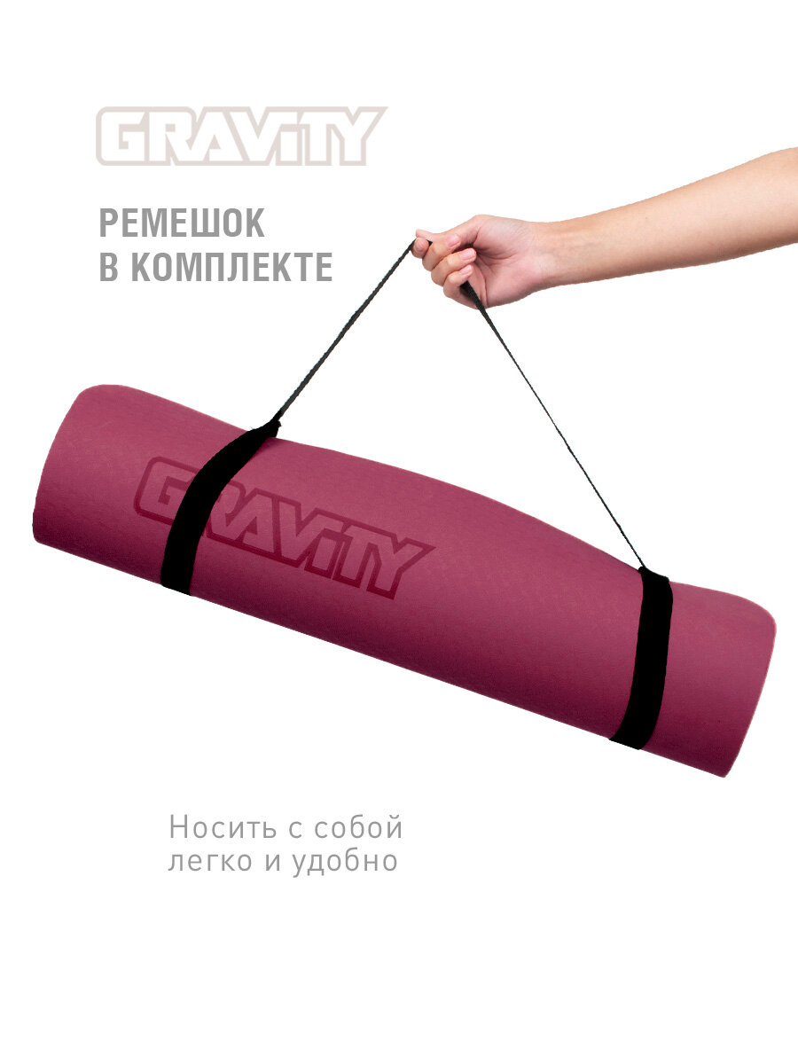 Купить Коврик для йоги и фитнеса Gravity TPE, 6 мм, бордовый, с эластичным шнуром, 183 x 61 см. с доставкой по всей России.