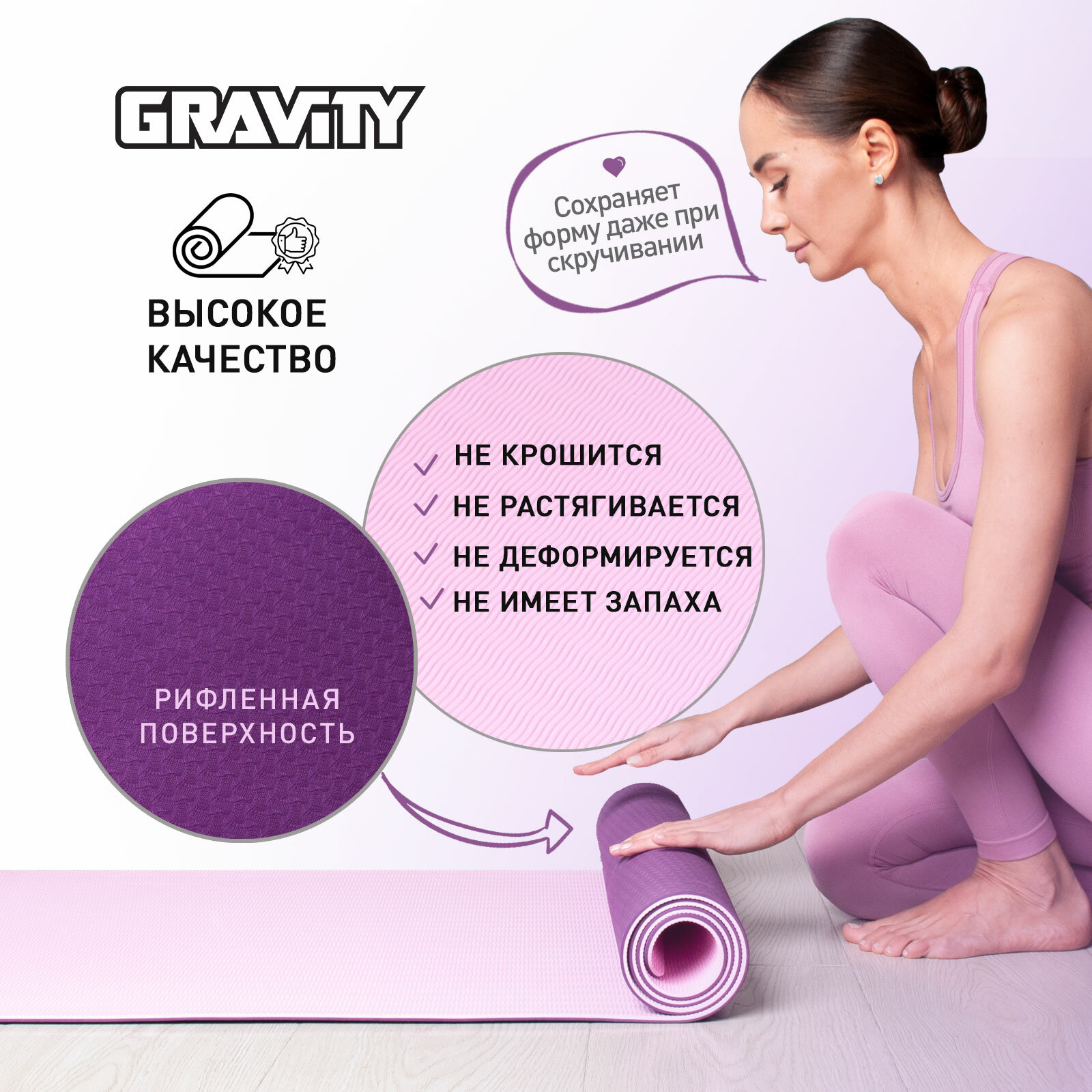 Коврик для йоги и фитнеса Gravity TPE, 6 мм, фиолетовый, с эластичным шнуром, 183 x 61 см.: сравнение цен, характеристики, фото, актуальное наличие и цены.