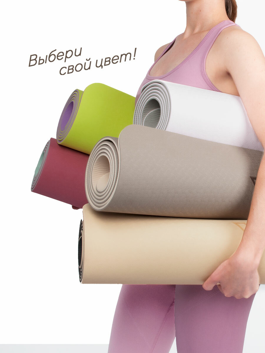 Купить Коврик для йоги и фитнеса Gravity TPE, 6 мм, лиловый, с эластичным шнуром, 183 x 61 см. с доставкой по всей России.