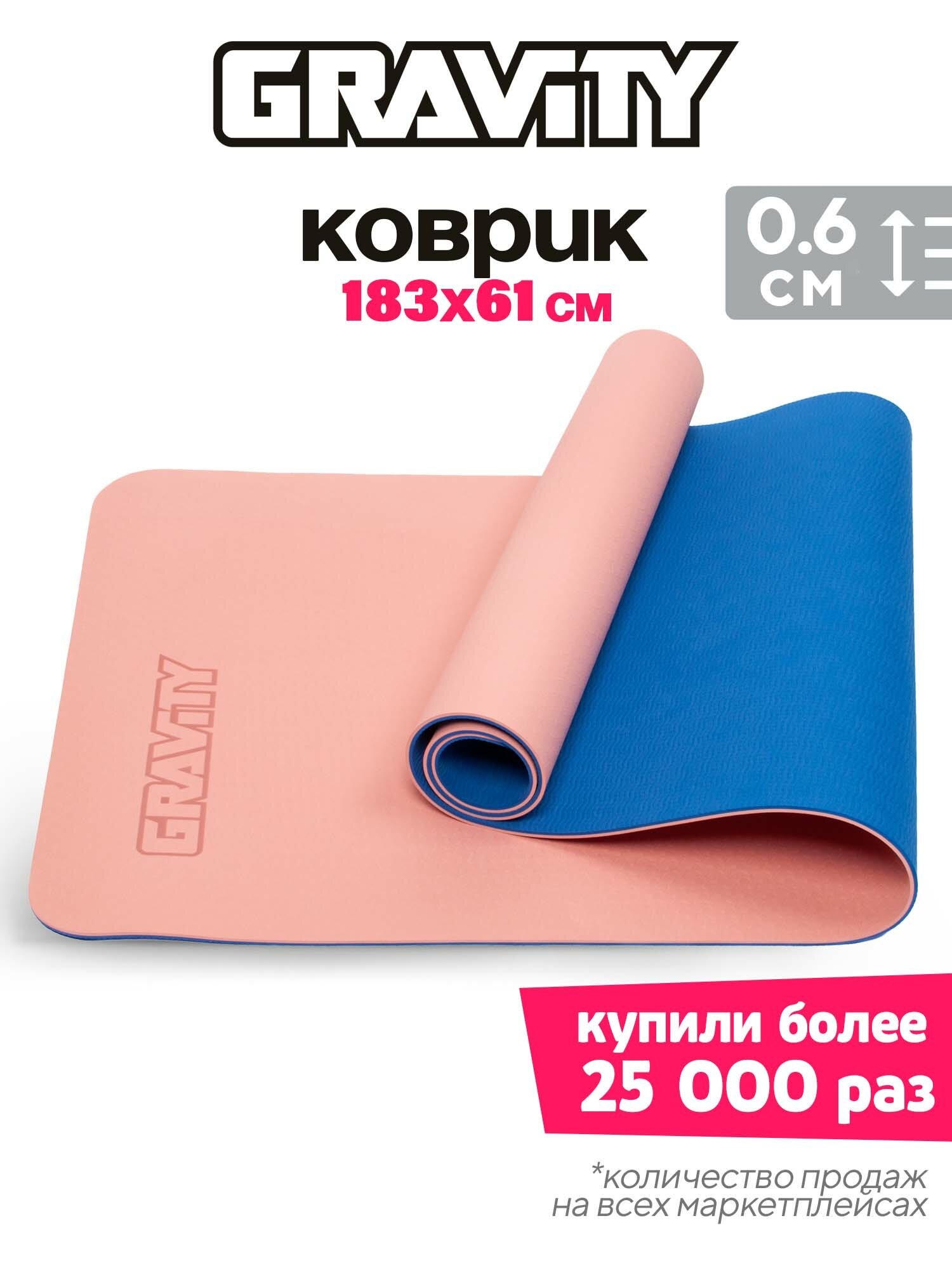Коврик для йоги и фитнеса Gravity TPE, 6 мм, розовый, с эластичным шнуром, 183 x 61 см.: сравнение цен, характеристики, фото, актуальное наличие и цены.
