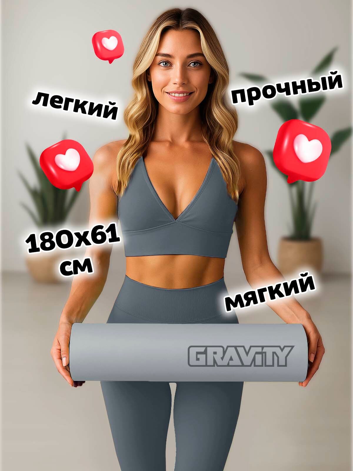 Коврик для йоги и фитнеса Gravity TPE, 6 мм, серый, с эластичным шнуром, 183 x 61 см.: сравнение цен, характеристики, фото, актуальное наличие и цены.