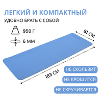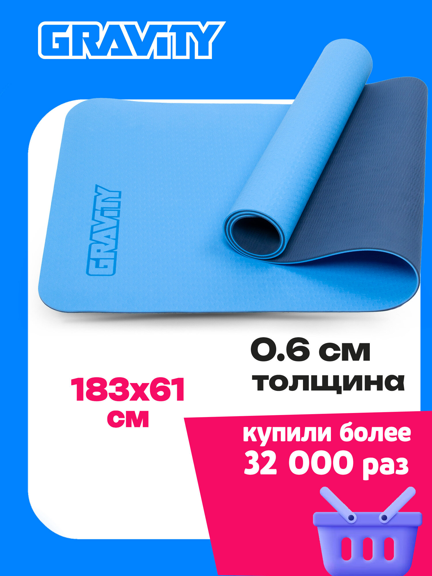Коврик для йоги и фитнеса Gravity TPE, 6 мм, светло-синий, с эластичным шнуром, 183 x 61 см.: сравнение цен, характеристики, фото, актуальное наличие и цены.