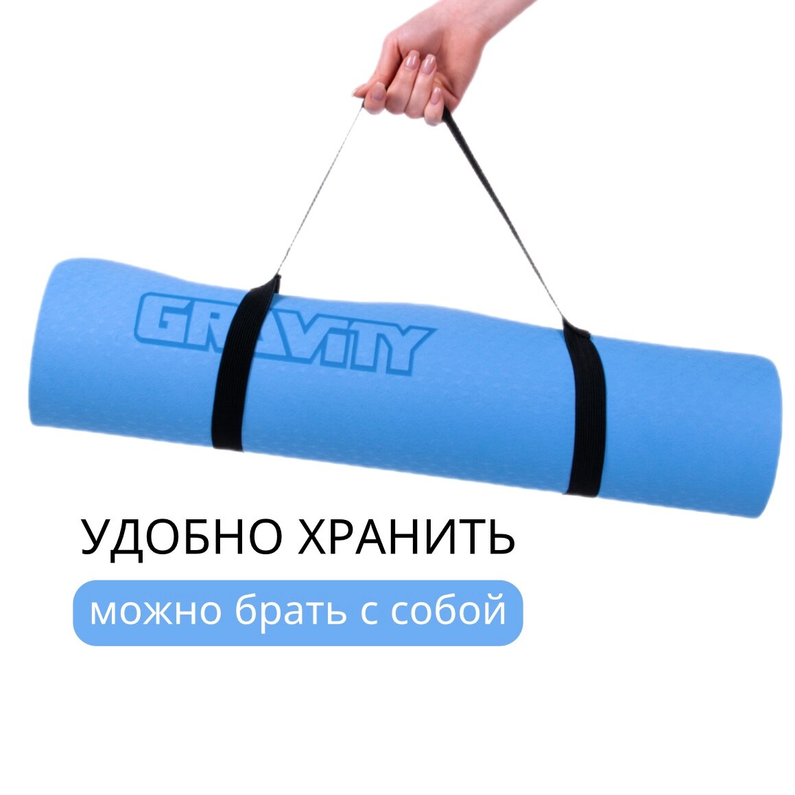 Купить Коврик для йоги и фитнеса Gravity TPE, 6 мм, светло-синий, с эластичным шнуром, 183 x 61 см. с доставкой по всей России.