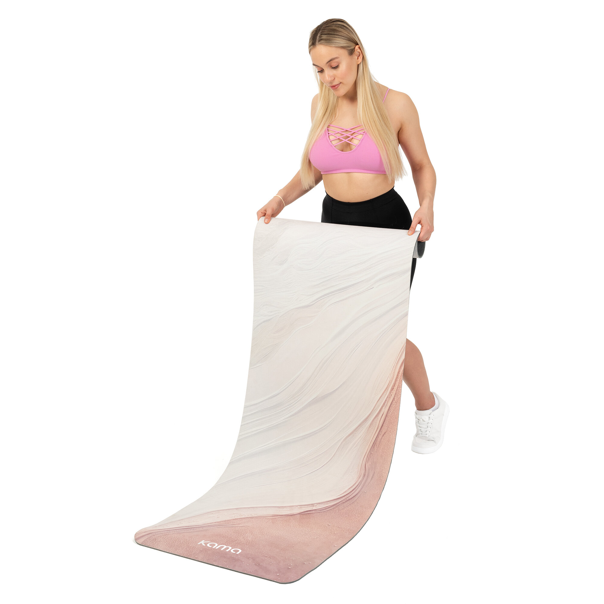 Нескользящий коврик для йоги от бренда Kama. Идеален для занятий йогой и фитнесом, растяжкой, и стретчингом и пилатесом. Коврик толщиной 6 мм это оптимальная толщина для занятий. На коврике комфортно держать баланс так как он не пружинит в отличие от толстых ковриков и при этом смягчает давление на локти и колени во время статичных положений. Оптимальное решение для новичков так как мат для йоги, сохраняет тепло и прочную устойчивость во время тренировки. Коврик для фитнеса изготовлен из экологичного мягкого материала ECO friendly TPE. Он не токсичен, упругий и эластичный, влагоустойчивый и нескользящий, не имеет посторонних запахов, легкий и мягкий. Благодаря безопасности материалов, подойдет для людей с чувствительной кожей и позволит использовать его даже, как детский коврик для йоги. Верхний слой гимнастического коврика из микрофибры не дает скользить мокрым ладоням при интенсивных нагрузках. Материал гипоаллергенен, не скапливает грязь и антистатичен. За ковриком удобно ухаживать. Достаточно промыть коврик водой с применением неагрессивных моющих средств. При сильных загрязнениях микрофибру можно чистить щеткой. Йога мат подходит для занятий фитнесом, пилатесом и растяжкой. На коврике можно заниматься в спортивной обуви. Храните коврик в сухом и защищенном месте.
