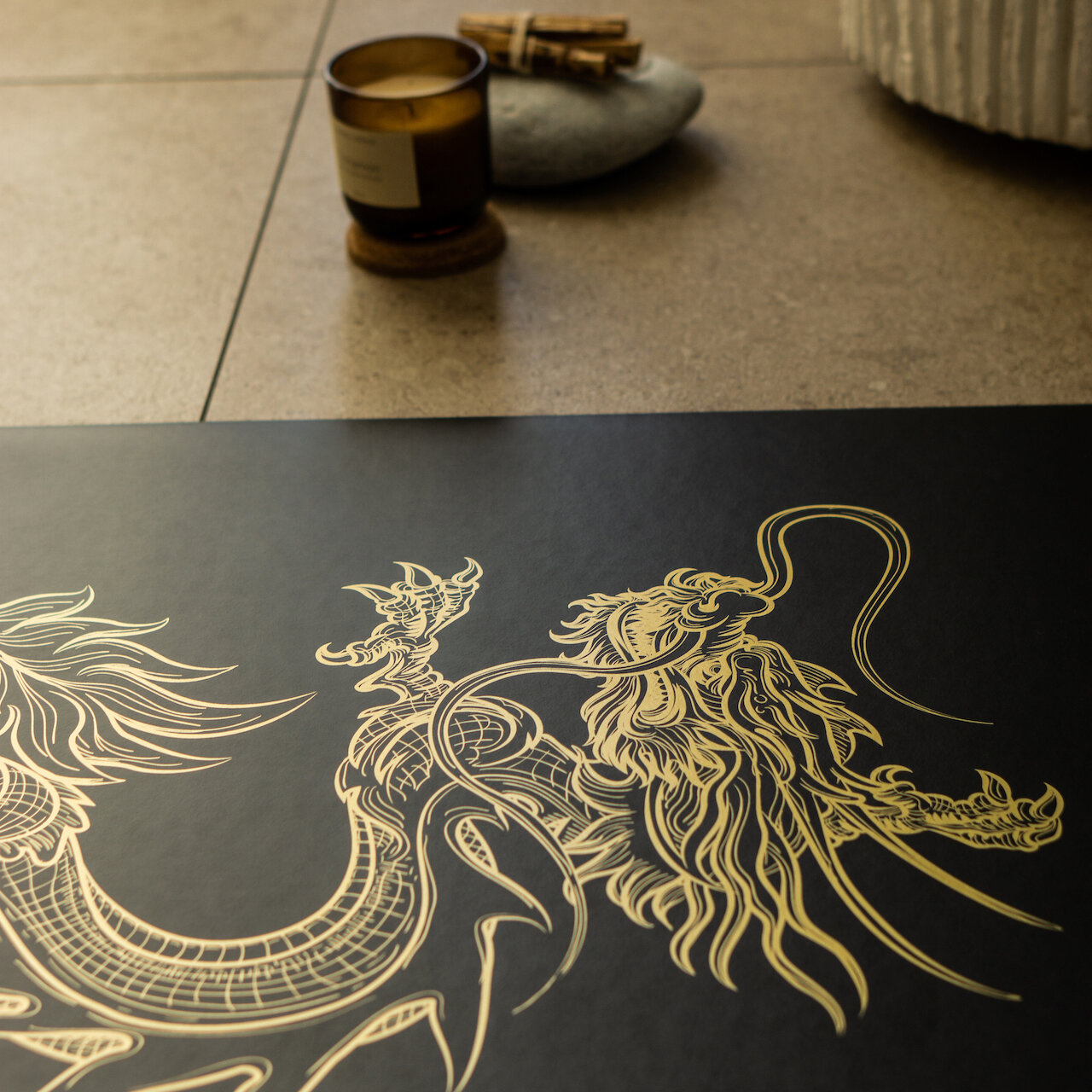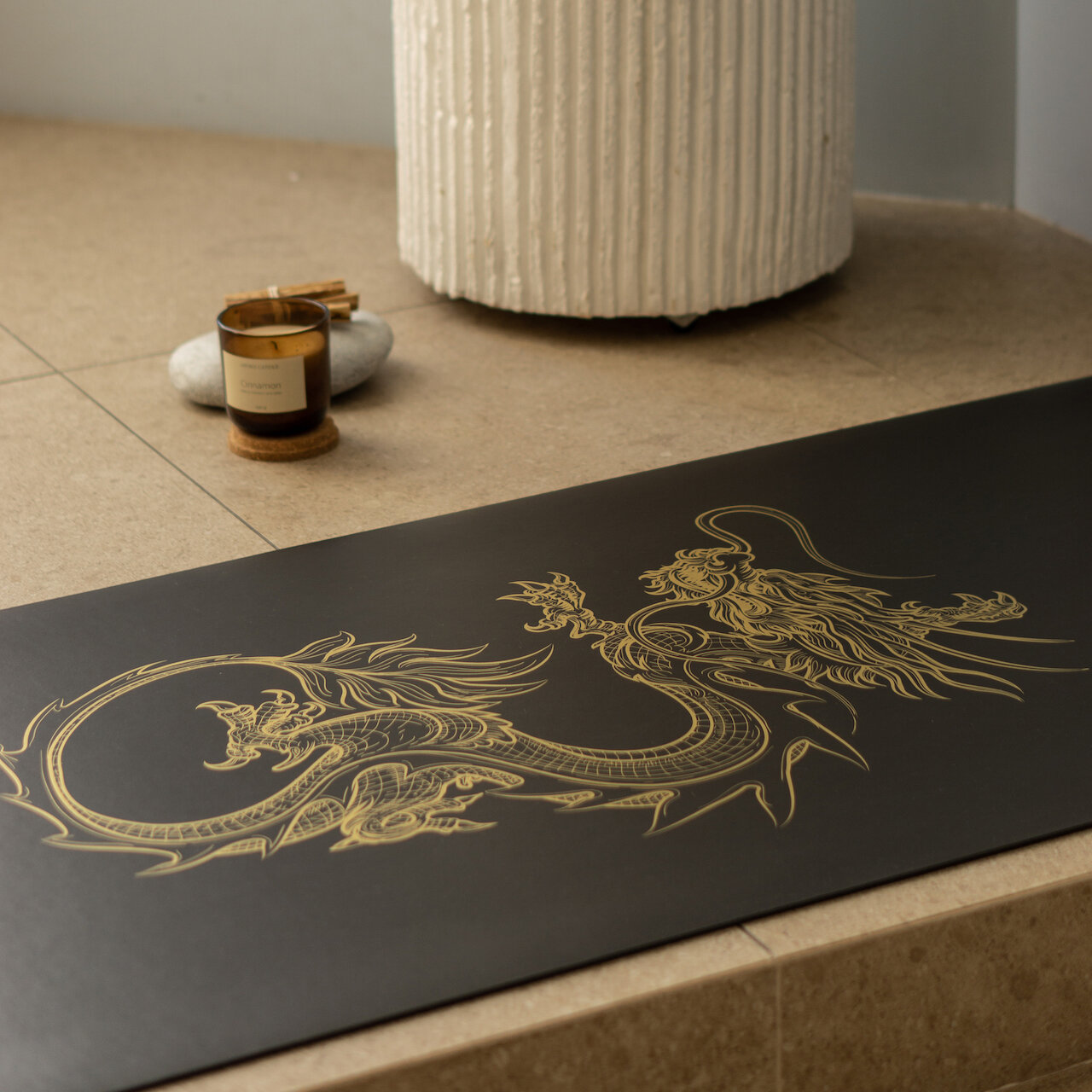 Купить Коврик для йоги и фитнеса каучуковый нескользящий с чехлом Арт Йогаматик Dragon Grey Gold 185x68x0.4 см, черный с золотым рисунком дракон с доставкой по всей России. Коврик для йоги и фитнеса каучуковый нескользящий с чехлом Арт Йогаматик Dragon Grey Gold 185x68x0.4 см, черный с золотым рисунком дракон: сравнение цен, характеристики, фото, актуальное наличие и цены.