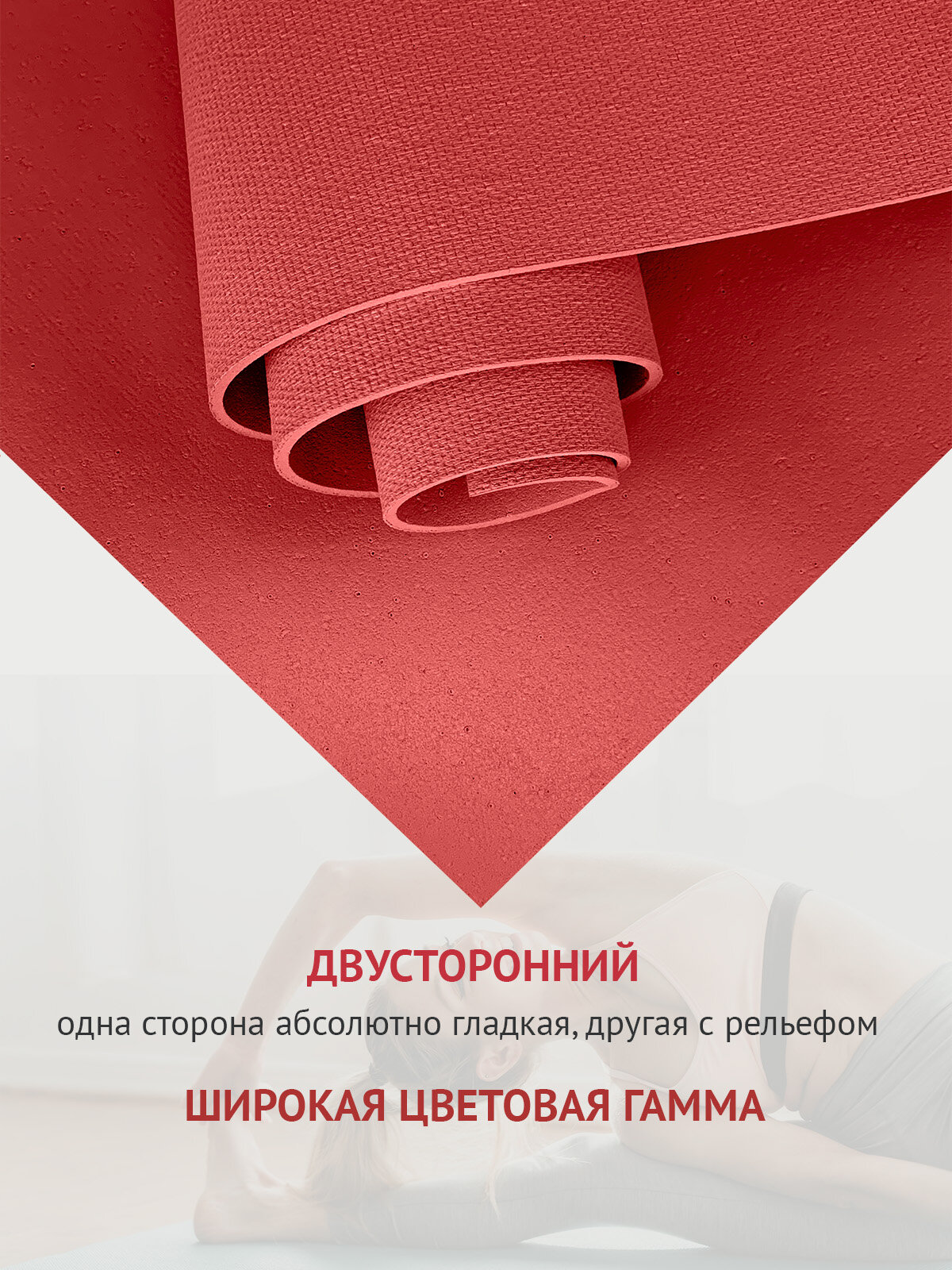 Двусторонний дизайн: Одна сторона коврика абсолютно гладкая, а другая имеет рельефное покрытие, которое обеспечивает надежное фиксирование рук в асанах.