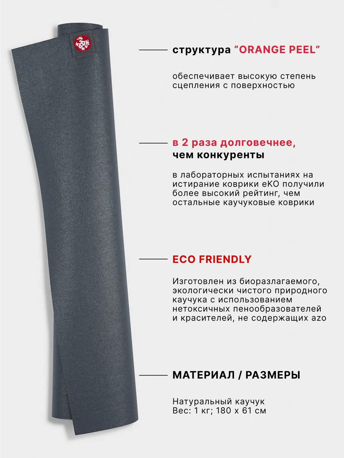 Купить Коврик для йоги Manduka eKO SuperLite Travel Charcoal 180*61*0,15 см, нескользящий, прочный, каучук с доставкой по всей России.