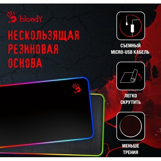 A4TECH Bloody MP-75N – это большой коврик для мыши, который сочетает в себе стиль и функциональность. Изготовленный из ткани и резины, он обеспечивает превосходное сцепление с мышью и долговечность.