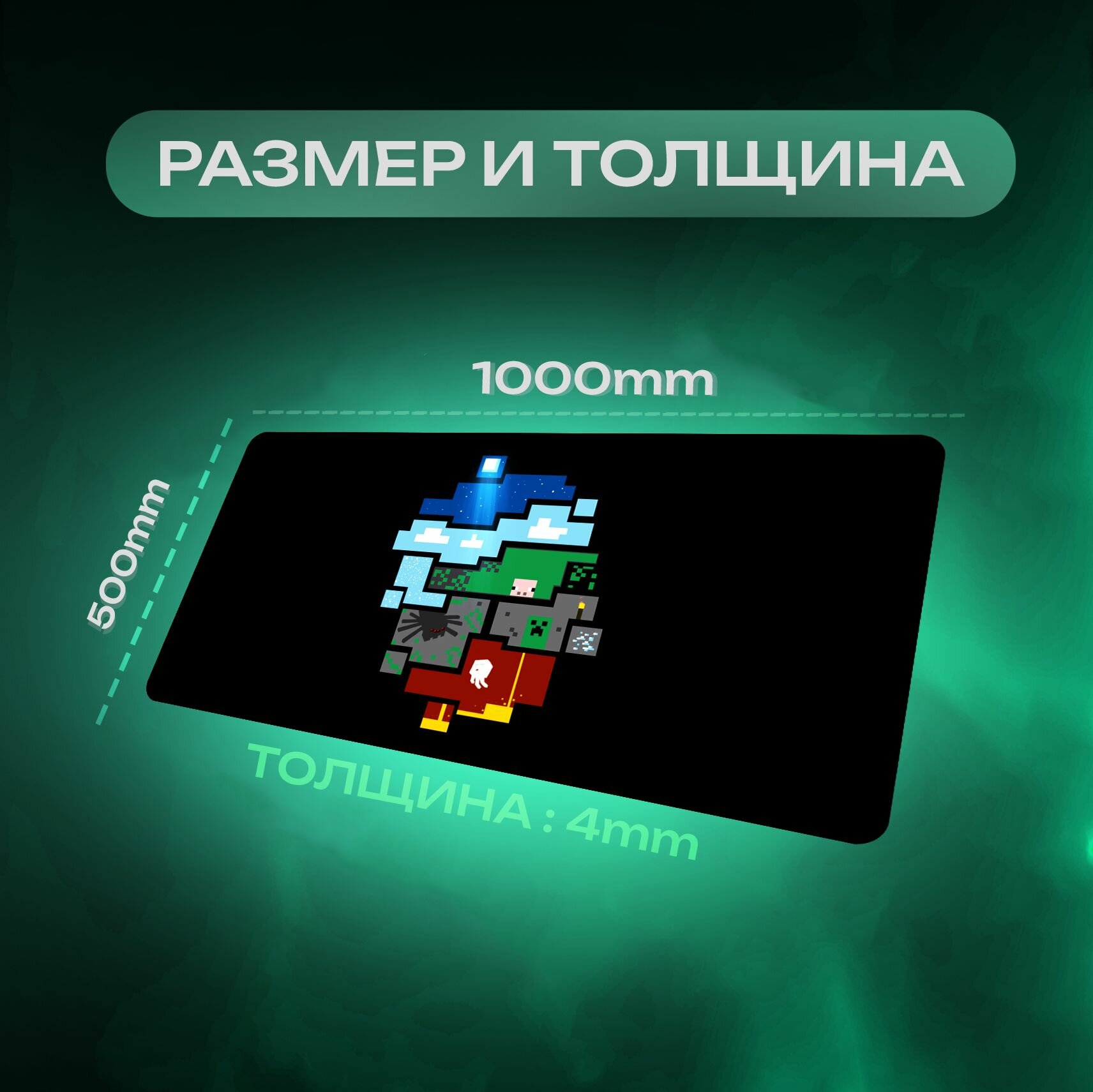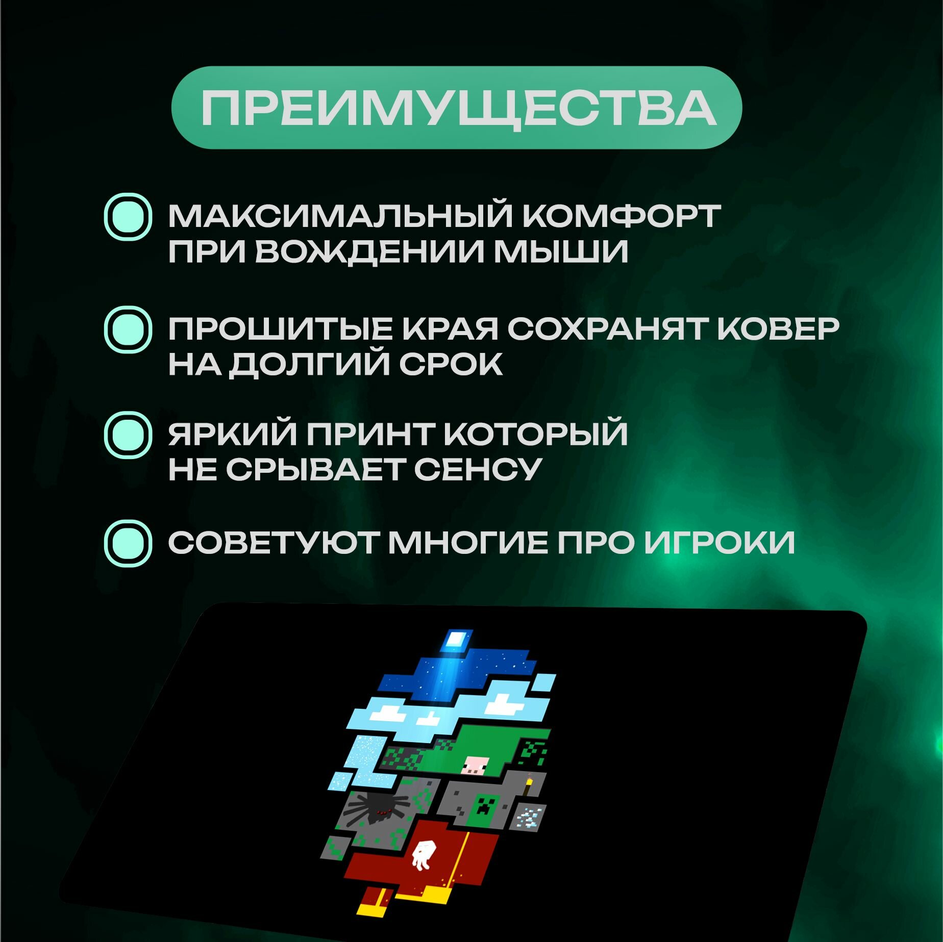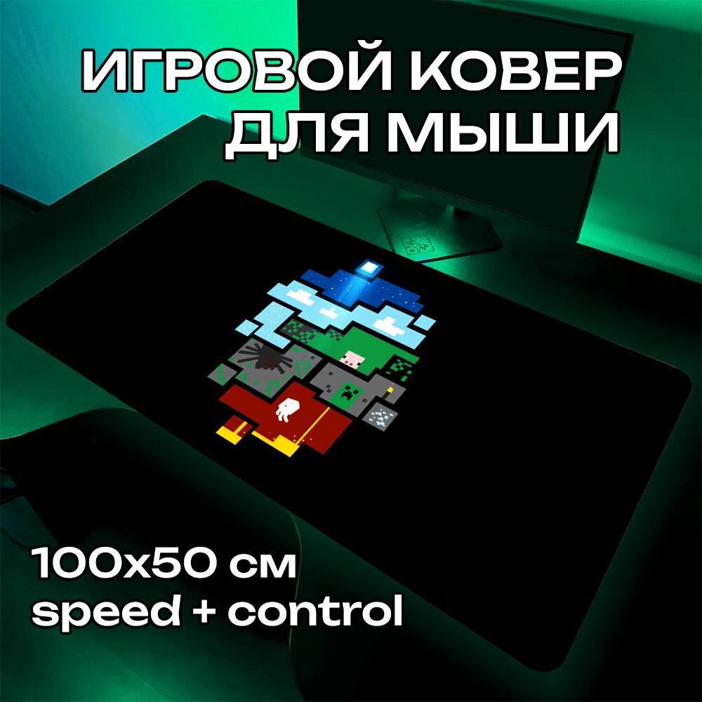 Большой игровой ковер для мыши изготовлен из современного материала, который отличается высокой прочностью, износостойкостью и устойчивостью к истиранию. Коврики обеспечивают плавное и точное скольжение мыши, а также легко поддаются очистке. Большой игровой коврик для мыши, с новой более плотной и крепкой прошивкой краев, отличает оригинальный, стильный, универсальный, в стиле аниме дизайн поэтому не изнашивается, не деформируется при длительном использовании. Геймерский коврик подходящий к любой периферии, придаст вашему рабочему месту стиль в офисе и дома, подходит для всех типов игр, от динамичных FPS-шутеров до масштабных MMORPG и был разработан с учетом мнений профессиональных игроков из CS: GO, VALORANT, DOTA 2, APEX LEGENDS, OVERWATCH, FORTNITE. Большой размер 1000 x 500 мм отлично подойдет каждому пользователю. Удобство и комфорт при работе за ПК или ноутбуком. Является лучшим подарком для геймера. Коврик для мышки оптимизирован для быстрого движения, сохраняя при этом превосходную скорость и контроль во время работы или игры, доступен для беспроводных и оптических мышек. Быстрое скольжение мыши по ковру. Покрытие Speed + Control. Оно обеспечивает плавное и быстрое скольжение мыши, а также точный контроль и высокую управляемость. Такое покрытие идеально подходит для пользователей, которым требуется как высокая скорость перемещения, так и точность позиционирования, например, для игр или профессиональной работы. Сбалансированные характеристики Speed + Control делают его универсальным решением для широкого круга задач. Прочная текстурированная основа из резины надежно фиксирует ковер на столе. Хорошо работает на всех типах поверхности. Прошитые края обеспечат отличный вид ковра на долгий срок. Данный ковер сделан в тематике: Minecraft, Майнкрафт, survival, creative, Redstone, pixel art, crafting, blocks, Ender Dragon, sandbox