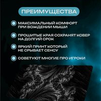 Большой игровой ковер для мыши изготовлен из современного материала, который отличается высокой прочностью, износостойкостью и устойчивостью к истиранию. Коврики обеспечивают плавное и точное скольжение мыши, а также легко поддаются очистке. Большой игровой коврик для мыши, с новой более плотной и крепкой прошивкой краев, отличает оригинальный, стильный, универсальный, в стиле аниме дизайн поэтому не изнашивается, не деформируется при длительном использовании. Геймерский коврик подходящий к любой периферии, придаст вашему рабочему месту стиль в офисе и дома, подходит для всех типов игр, от динамичных FPS-шутеров до масштабных MMORPG и был разработан с учетом мнений профессиональных игроков из CS: GO, VALORANT, DOTA 2, APEX LEGENDS, OVERWATCH, FORTNITE. Большой размер 1000 x 500 мм отлично подойдет каждому пользователю. Удобство и комфорт при работе за ПК или ноутбуком. Является лучшим подарком для геймера. Коврик для мышки оптимизирован для быстрого движения, сохраняя при этом превосходную скорость и контроль во время работы или игры, доступен для беспроводных и оптических мышек. Быстрое скольжение мыши по ковру. Покрытие Speed + Control. Оно обеспечивает плавное и быстрое скольжение мыши, а также точный контроль и высокую управляемость. Такое покрытие идеально подходит для пользователей, которым требуется как высокая скорость перемещения, так и точность позиционирования, например, для игр или профессиональной работы. Сбалансированные характеристики Speed + Control делают его универсальным решением для широкого круга задач. Прочная текстурированная основа из резины надежно фиксирует ковер на столе. Хорошо работает на всех типах поверхности. Прошитые края обеспечат отличный вид ковра на долгий срок. Данный ковер сделан в тематике: черно-белый, black and white, minimal, monochrome, contrast, стильный, classic, дизайн, aesthetic, modern