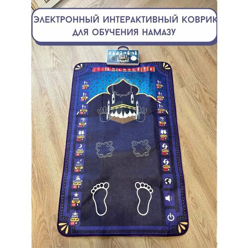 Электронный интерактивный сенсорный обучающий коврик для намаза. Благодаря этому коврику можно научить ребенка молитве с 3-4 лет в игровой форме. На коврике есть специальные отметки для ладоней и ступней, чтобы он реагировал на движения в молитве и поклоны. 36 интерактивных клавиш (функций) полностью обучат словам, необходимым для молитвы. Обучает на шести языках: турецкий, английский, русский, арабский, французский, малайский. Использование интуитивно понятных сенсорных клавиш позволяет выбирать для обучения разные виды обязательных и дополнительных молитв - фаджр, зухр, аср, магриб, иша, таравих и тд. Датчики положения молящегося указывают на имеющиеся ошибки в намазе. Встроенный компас позволяет определить Киблу (направление в сторону Каабы). Учит делать дуа после намаза, зикр. В изготовлении использованы водонепроницаемые материалы. Питание от батареек 1,5VхAA - 3 шт. Они не входят в комплект! Коврик упакован в коробку с ручкой - то есть отлично подойдет на подарок: для девочек, для мальчиков. Прекрасный вариант первой детской электроники. Молитвенный коврик детский подойдет в качестве подарка для мусульман на рамадан, рамазан, ид аль фитр, ид аль адха, курбан байрам, ураза байрам.