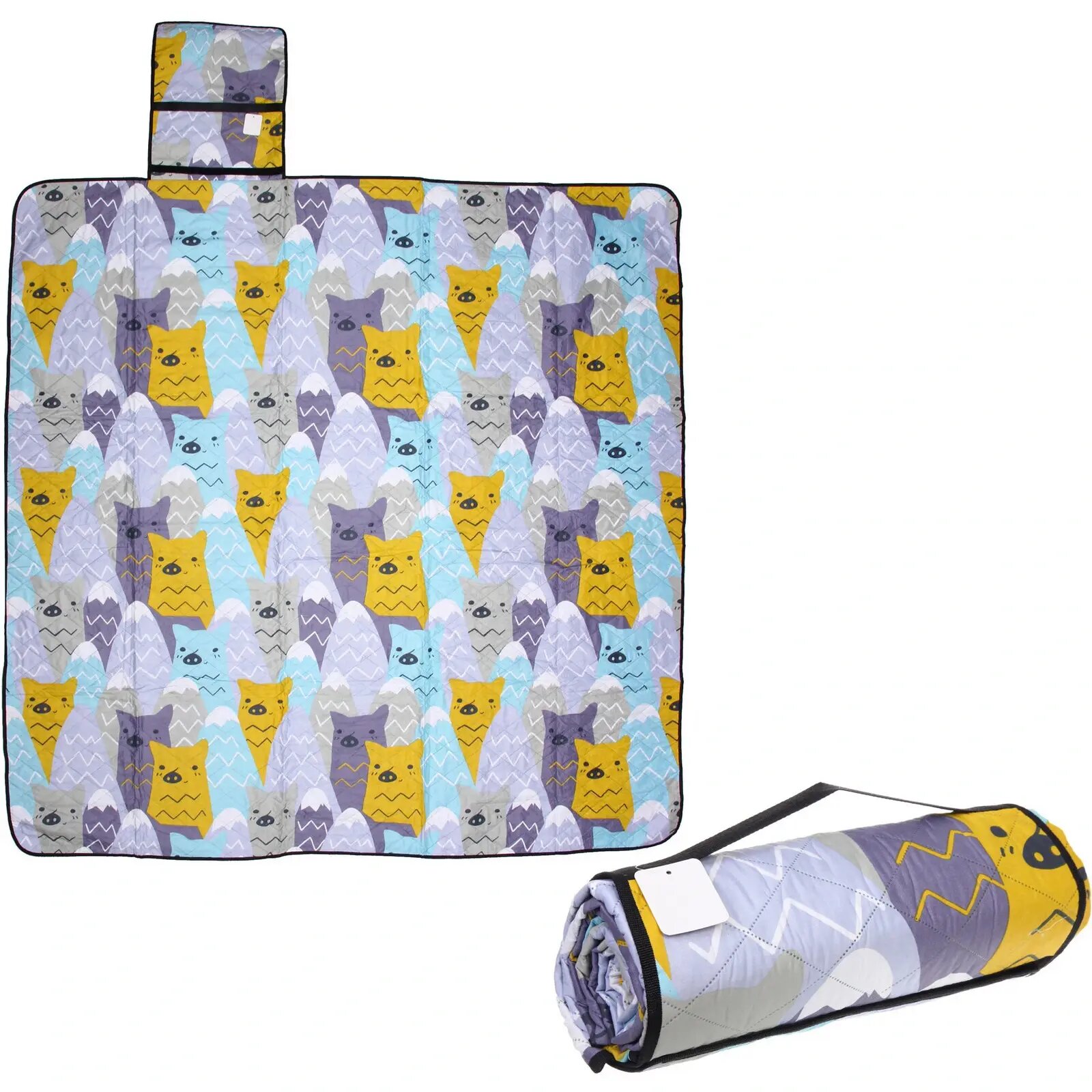 Купить Коврик для пикника с принтом медведи, 200х200см, пвх/полиэстер, складной, желтый/серый, ручка с доставкой по всей России.