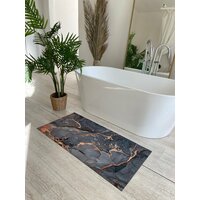 Впитывающий быстросохнущий коврик в ванну комнату или туалет это пожалуй, основная вещь в этих помещениях. Именно благодаря этому аксессуару, можно с лёгкостью преобразить интерьер, добавить ему стиля и получить намного больше комфорта после посещения душа или ванны. Наш напольный коврик противоскользящий, отлично впитывает лишнюю влагу и так же имеет яркий и трендовый рисунок под мрамор, он быстросохнущий и благодаря этому не даст образовываться плесени и грибку, его основа не скользит, а значит вы можете безопасно наступать на него после банных процедур. Более того, влаговпитывающий половик изготовлен из инновационных материалов, имеет четыре слоя: нескользящая текстура резинового дна, пенополиуретановый абсорбирующий и регенерированный слой губки и основная поверхность ткани из кожи наппа. Оптимальные размеры 90 на 150 см позволят разместить его практически в любой комнате. Этот прорезиненный мягкий ковер превосходный декор для вашей душевой, наступив на него, ваши ноги почувствуют мягкость и расслабление, а пол всегда будет оставаться сухим. Туалетный мраморный вспененный коврик будет отличным подарком на новый год, день рождения и так же полезный презент на новоселье для друзей и близких. Универсален для любых назначений, для квартиры у душевой кабины и так же на даче для бани и сауны, заказывайте его сейчас и ощутите лично его качество, мягкость и максимальный комфорт. При вскрытии коврика может быть небольшой запах прорезиненной основы, но он выветривается за 1 день, проверено.
