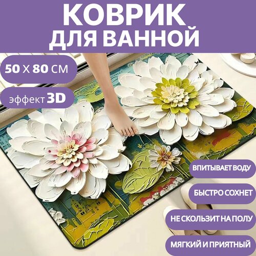 Коврик для ванной быстросохнущий, 50х80см, противоскользящий с цветами 3Д, диатомитовый: сравнение цен, характеристики, фото, актуальное наличие и цены.