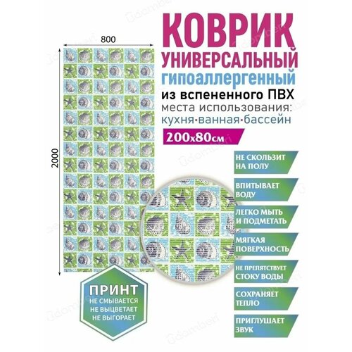 Коврик для ванны или душа в эстетичном дизайне - стильный интерьерный элемент, который станет эффектным украшением комнаты. Универсальный аксессуар толщиной 3 мм выполнен в оптимальном размере: длина - 200 см, ширина - 80 см, изготовлен из гипоаллергенного материала - вспененного ПВХ. Перфорированный «половик» прямоугольной формы украшен стильным принтом, который не смывается, не выцветает и не выгорает, долго радует вас насыщенностью цвета и яркостью декоративного рисунка в виде ракушек или камушков, цветов и растений, красивых узоров. Износостойкий ковер можно расположить в ванной комнате, чтобы опускать на него ноги после купания без риска поскользнуться и упасть. Его можно положить около стиральной машины, около унитаза в туалете. Модный аксессуар уютно украсит совмещенный санузел в доме или квартире. Красивый коврик с очень мягкой поверхностью не скользит по полу, впитывает воду, не препятствует ее активному стоку, приглушает звуки и сохраняет тепло. Современную модель с антискользящей основой выбирают для сауны или бани на даче, для расположения у лесенки бассейна или в душе для водных процедур. Защитный аксессуар важен для вашей безопасности - он исключает опасность поскользнуться на мокрой и скользкой плитке. Гибкий коврик легко скручивается в рулон для хранения и не занимает много места в шкафу. Он прост в уходе: его можно мыть в воде с мыльным раствором вручную, выбирать для очищения стирку в машинке - автомат. Противоскользящий коврик - практичное приобретение для взрослых женщин и мужчин, хороший подарок для родных и близких, для друзей с детьми на новоселье, любой другой праздник, в том числе на день рождения. В линейке бренда представлены модели в сочетаниях светлых и темных цветов, с различными рисунками, в том числе в морском стиле. Долговечную «дорожку» выбирают в виде домашнего или дачного комнатного аксессуара, используют в любое время года: в летний или зимний, осенний или весенний период, в помещении или на улице. Комплект поставки включает один предмет: влаговпитывающий коврик (1 штука). Товар поставляется в защитной упаковке для сохранности изделия в процессе доставки покупателю из нашего магазина. Произведено в России.