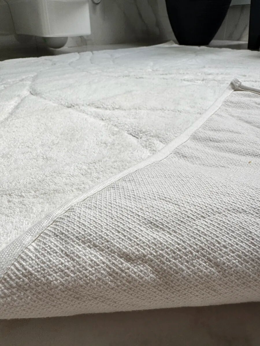 Коврик для ванной напоминает махровое полотенце, с обратной стороны имеет латексное напыление. Разными размерами вы приукрасите вашу ванную комнату. Представьте себе уютное пространство, где каждый элемент продуман до мелочей. Мягкая текстура махровой ткани подарит вам приятные ощущения после каждого душа, аккуратно впитывая капли воды и сохраняя тепло. Латексное напыление на обратной стороне обеспечивает надежное сцепление с поверхностью пола, предотвращая скольжение и обеспечивая безопасность.
