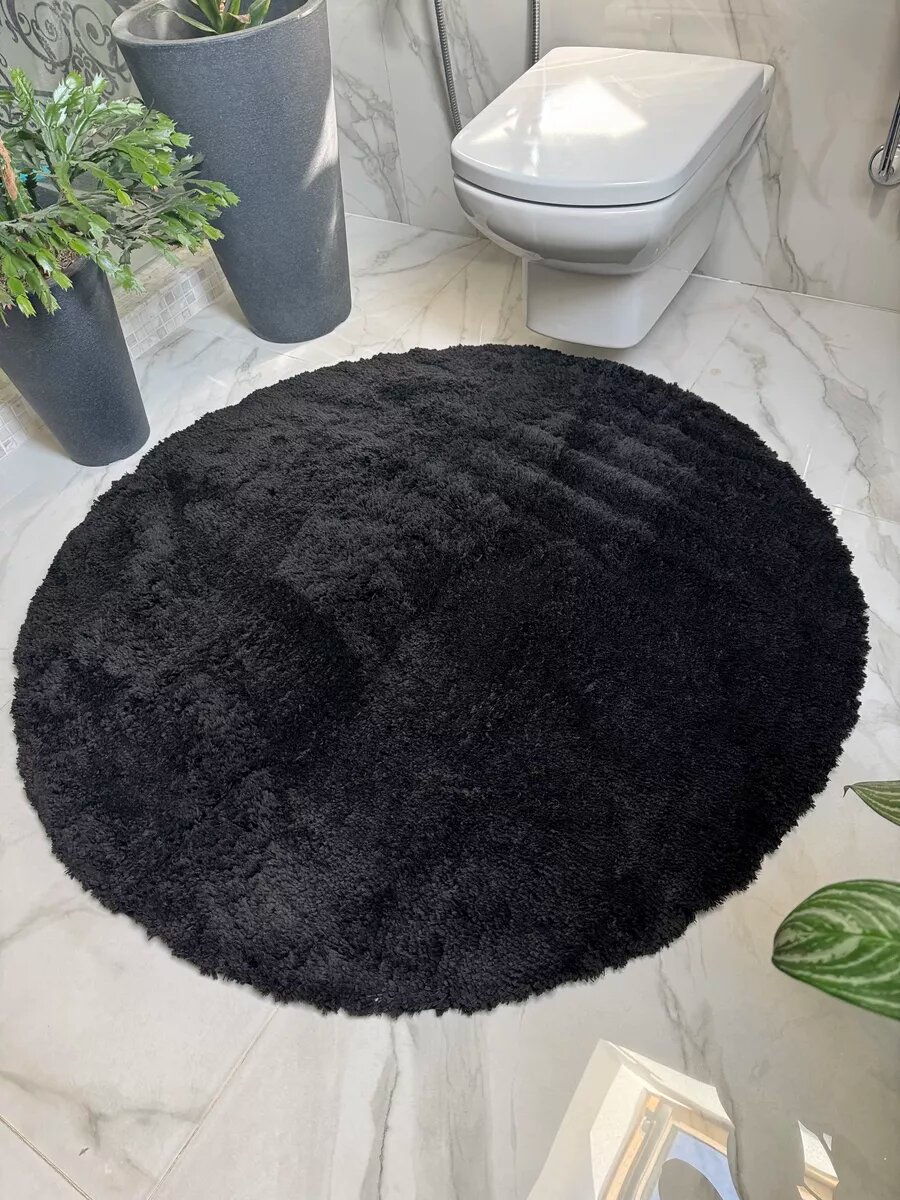 Коврик для ванной и туалета из микрофибры, черный, круглый 180х180 см