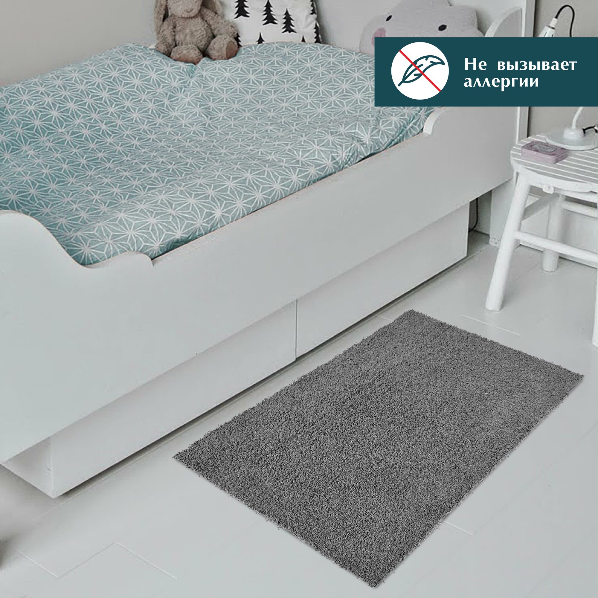 Половик с ворсом изготовлен из гипоаллергенных материалов, что делает его безопасным для использования в доме. Противоскользящий коврик идеально впишется в любой дизайн и не будет скользить на плитке.
