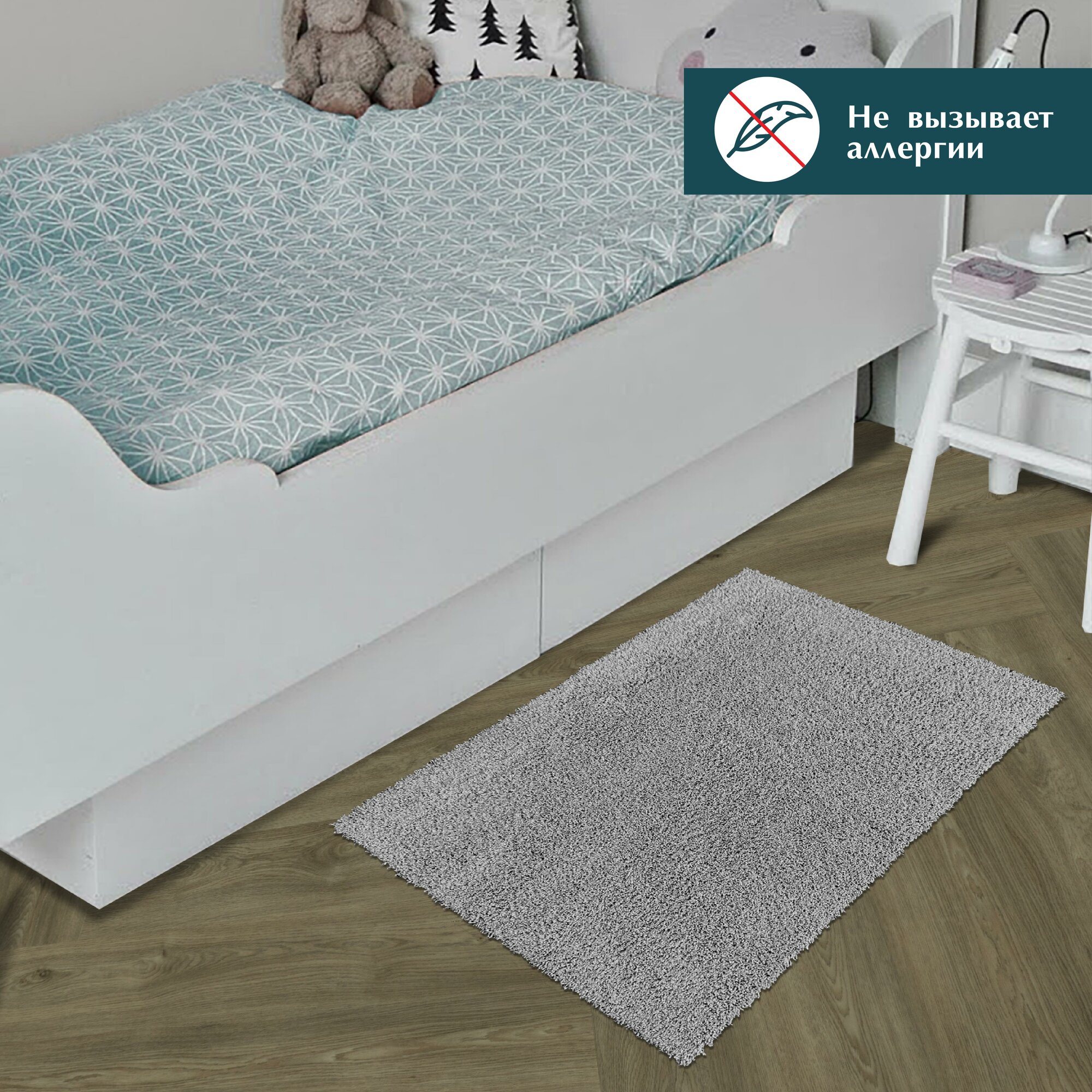 Половик с ворсом изготовлен из гипоаллергенных материалов, что делает его безопасным для использования в доме. Противоскользящий коврик идеально впишется в любой дизайн и не будет скользить на плитке.