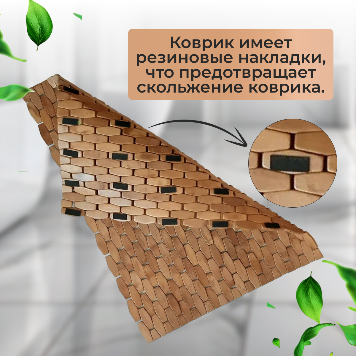 Коврик деревянный для ванной комнаты 60х90 см, сауны, бани, территории около бассейна. Не впитывает влагу, оставляя ноги сухими, что предотвращает распространение неприятного запаха. Приятная поверхность натурального происхождения способствует расслаблению стоп. Коврик имеет резиновые накладки, что предотвращает скольжение коврика. Усложненная геометрическая форма кубиков коврика добавит шарм вашему дому. Слегка темный цвет коврика зимой напомнит о вашем загаре.