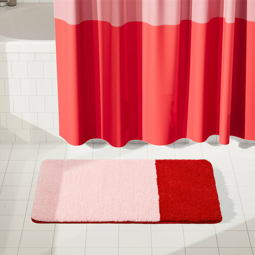 Красный коврик колор-блок Pragma Nipsop с пушистым ворсом из микрофибры станет ярким акцентом в интерьере ванной комнаты.