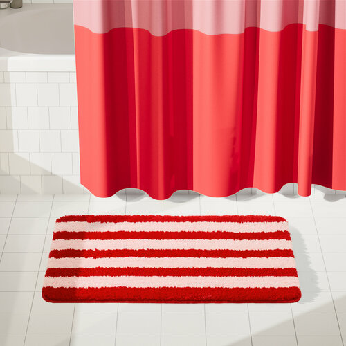 Красный коврик в полоску Pragma Nipsop с пушистым ворсом из микрофибры станет ярким акцентом в интерьере ванной комнаты.