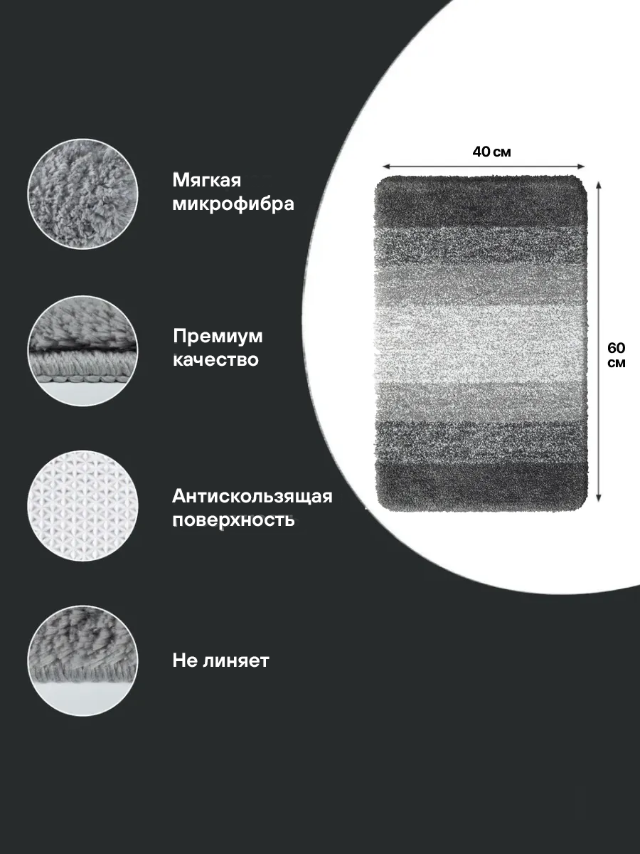 Коврик для ванной премиум, противоскользящая основа, впитывающая способность, черный, 60×40см: сравнение цен, характеристики, фото, актуальное наличие и цены.