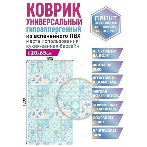 Коврик для ванны или душа в эстетичном дизайне - стильный интерьерный элемент, который станет эффектным украшением комнаты. Универсальный аксессуар толщиной 3 мм выполнен в оптимальном размере: длина - 120 см, ширина - 65 см, изготовлен из гипоаллергенного материала - вспененного ПВХ. Перфорированный «половик» прямоугольной формы украшен стильным принтом, который не смывается, не выцветает и не выгорает, долго радует вас насыщенностью цвета и яркостью декоративного рисунка в виде ракушек или камушков, цветов и растений, красивых узоров. Износостойкий ковер можно расположить в ванной комнате, чтобы опускать на него ноги после купания без риска поскользнуться и упасть. Его можно положить около стиральной машины, около унитаза в туалете. Модный аксессуар уютно украсит совмещенный санузел в доме или квартире. Красивый коврик с очень мягкой поверхностью не скользит по полу, впитывает воду, не препятствует ее активному стоку, приглушает звуки и сохраняет тепло. Современную модель с антискользящей основой выбирают для сауны или бани на даче, для расположения у лесенки бассейна или в душе для водных процедур. Защитный аксессуар важен для вашей безопасности - он исключает опасность поскользнуться на мокрой и скользкой плитке. Гибкий коврик легко скручивается в рулон для хранения и не занимает много места в шкафу. Он прост в уходе: его можно мыть в воде с мыльным раствором вручную, выбирать для очищения стирку в машинке - автомат. Противоскользящий коврик - практичное приобретение для взрослых женщин и мужчин, хороший подарок для родных и близких, для друзей с детьми на новоселье, любой другой праздник, в том числе на день рождения. В линейке бренда представлены модели в сочетаниях светлых и темных цветов, с различными рисунками, в том числе в морском стиле. Долговечную «дорожку» выбирают в виде домашнего или дачного комнатного аксессуара, используют в любое время года: в летний или зимний, осенний или весенний период, в помещении или на улице. Комплект поставки включает один предмет: влаговпитывающий коврик (1 штука). Товар поставляется в защитной упаковке для сохранности изделия в процессе доставки покупателю из нашего магазина. Произведено в России. У нас есть акции и распродажи, вы можете купить наши товары в подарок со скидкой!