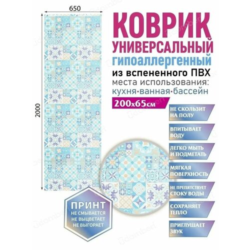 Коврик для ванны или душа в эстетичном дизайне - стильный интерьерный элемент, который станет эффектным украшением комнаты. Универсальный аксессуар толщиной 3 мм выполнен в оптимальном размере: длина - 200 см, ширина - 65 см, изготовлен из гипоаллергенного материала - вспененного ПВХ. Перфорированный «половик» прямоугольной формы украшен стильным принтом, который не смывается, не выцветает и не выгорает, долго радует вас насыщенностью цвета и яркостью декоративного рисунка в виде ракушек или камушков, цветов и растений, красивых узоров. Износостойкий ковер можно расположить в ванной комнате, чтобы опускать на него ноги после купания без риска поскользнуться и упасть. Его можно положить около стиральной машины, около унитаза в туалете. Модный аксессуар уютно украсит совмещенный санузел в доме или квартире. Красивый коврик с очень мягкой поверхностью не скользит по полу, впитывает воду, не препятствует ее активному стоку, приглушает звуки и сохраняет тепло. Современную модель с антискользящей основой выбирают для сауны или бани на даче, для расположения у лесенки бассейна или в душе для водных процедур. Защитный аксессуар важен для вашей безопасности - он исключает опасность поскользнуться на мокрой и скользкой плитке. Гибкий коврик легко скручивается в рулон для хранения и не занимает много места в шкафу. Он прост в уходе: его можно мыть в воде с мыльным раствором вручную, выбирать для очищения стирку в машинке - автомат. Противоскользящий коврик - практичное приобретение для взрослых женщин и мужчин, хороший подарок для родных и близких, для друзей с детьми на новоселье, любой другой праздник, в том числе на день рождения. В линейке бренда представлены модели в сочетаниях светлых и темных цветов, с различными рисунками, в том числе в морском стиле. Долговечную «дорожку» выбирают в виде домашнего или дачного комнатного аксессуара, используют в любое время года: в летний или зимний, осенний или весенний период, в помещении или на улице. Комплект поставки включает один предмет: влаговпитывающий коврик (1 штука). Товар поставляется в защитной упаковке для сохранности изделия в процессе доставки покупателю из нашего магазина. Произведено в России. У нас есть акции и распродажи, вы можете купить наши товары в подарок со скидкой!