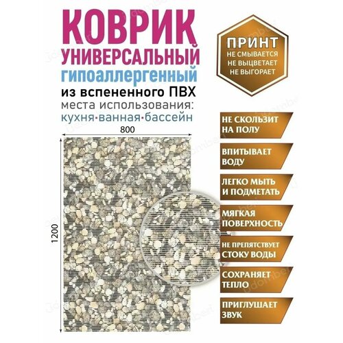 Коврик для ванны или душа в эстетичном дизайне - стильный интерьерный элемент, который станет эффектным украшением комнаты. Универсальный аксессуар толщиной 3 мм выполнен в оптимальном размере: длина - 120 см, ширина - 80 см, изготовлен из гипоаллергенного материала - вспененного ПВХ. Перфорированный «половик» прямоугольной формы украшен стильным принтом, который не смывается, не выцветает и не выгорает, долго радует вас насыщенностью цвета и яркостью декоративного рисунка в виде ракушек или камушков, цветов и растений, красивых узоров. Износостойкий ковер можно расположить в ванной комнате, чтобы опускать на него ноги после купания без риска поскользнуться и упасть. Его можно положить около стиральной машины, около унитаза в туалете. Модный аксессуар уютно украсит совмещенный санузел в доме или квартире. Красивый коврик с очень мягкой поверхностью не скользит по полу, впитывает воду, не препятствует ее активному стоку, приглушает звуки и сохраняет тепло. Современную модель с антискользящей основой выбирают для сауны или бани на даче, для расположения у лесенки бассейна или в душе для водных процедур. Защитный аксессуар важен для вашей безопасности - он исключает опасность поскользнуться на мокрой и скользкой плитке. Гибкий коврик легко скручивается в рулон для хранения и не занимает много места в шкафу. Он прост в уходе: его можно мыть в воде с мыльным раствором вручную, выбирать для очищения стирку в машинке - автомат. Противоскользящий коврик - практичное приобретение для взрослых женщин и мужчин, хороший подарок для родных и близких, для друзей с детьми на новоселье, любой другой праздник, в том числе на день рождения. В линейке бренда представлены модели в сочетаниях светлых и темных цветов, с различными рисунками, в том числе в морском стиле. Долговечную «дорожку» выбирают в виде домашнего или дачного комнатного аксессуара, используют в любое время года: в летний или зимний, осенний или весенний период, в помещении или на улице. Комплект поставки включает один предмет: влаговпитывающий коврик (1 штука). Товар поставляется в защитной упаковке для сохранности изделия в процессе доставки покупателю из нашего магазина. Произведено в России. У нас есть акции и распродажи, вы можете купить наши товары в подарок со скидкой!